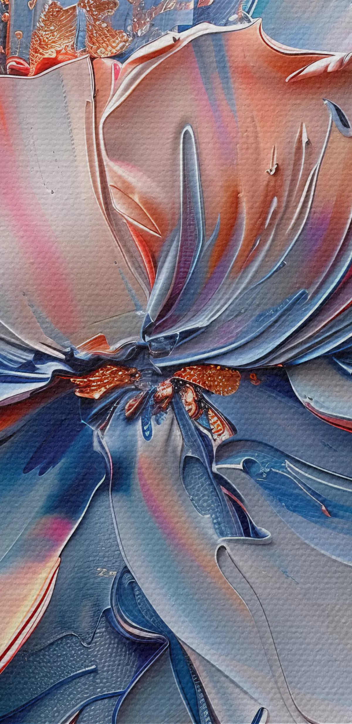 Tablouri Floare mare cu tușe îndrăznețe în culorile albastru și piersică s41004