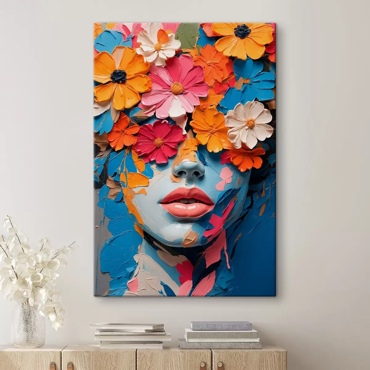 Pictură pe pânză Fata fata în ulei acoperit cu flori Nr s41023