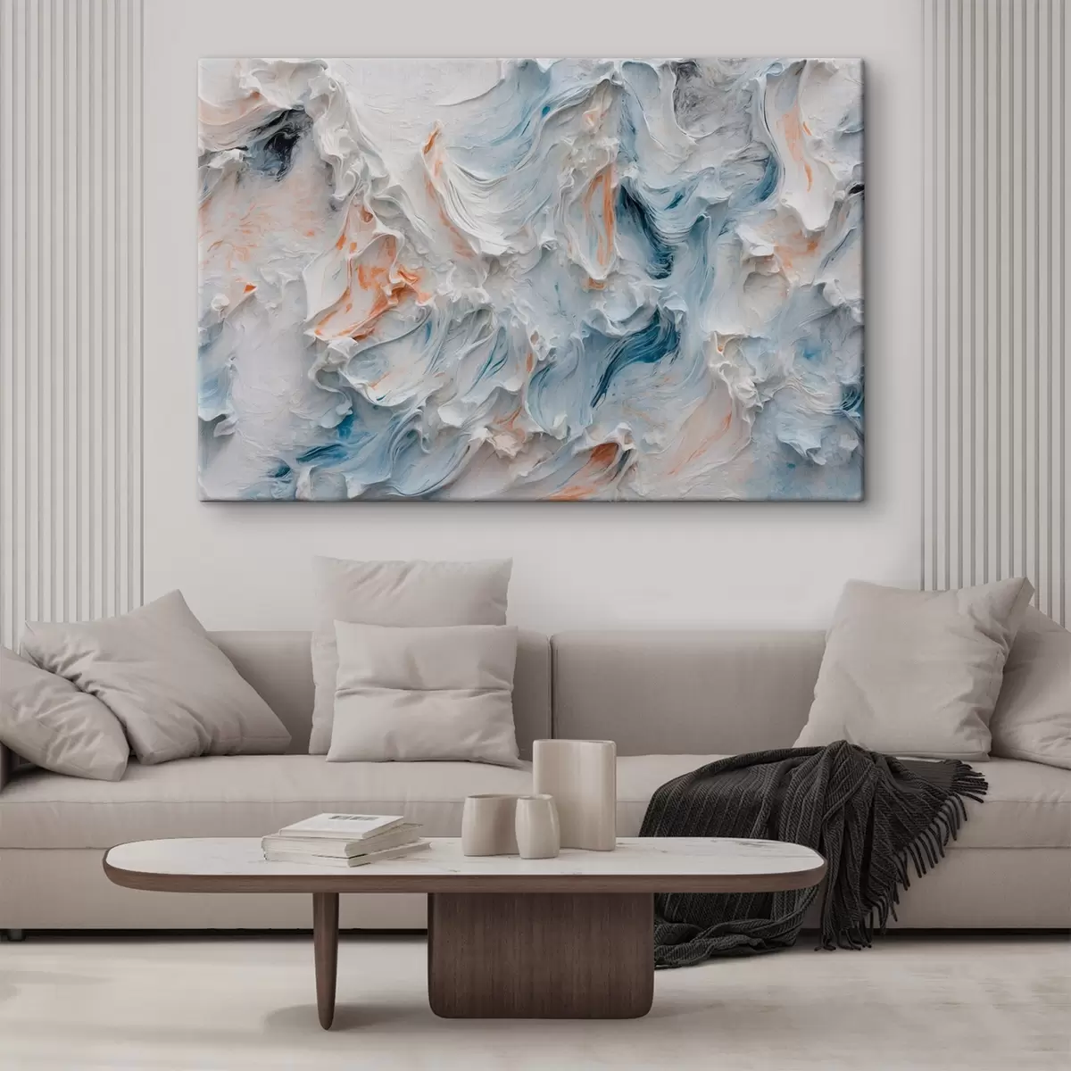 Pictură pe pânză Abstracție cu culorile alb, portocaliu și albastru Nr s41026