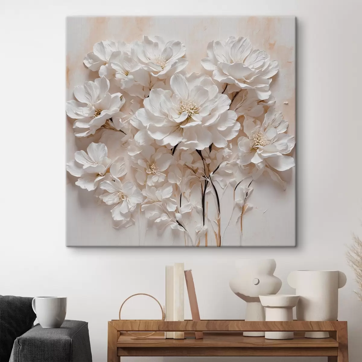 Pictură pe pânză Flori albe pe fundal alb-portocaliu Nr s41042