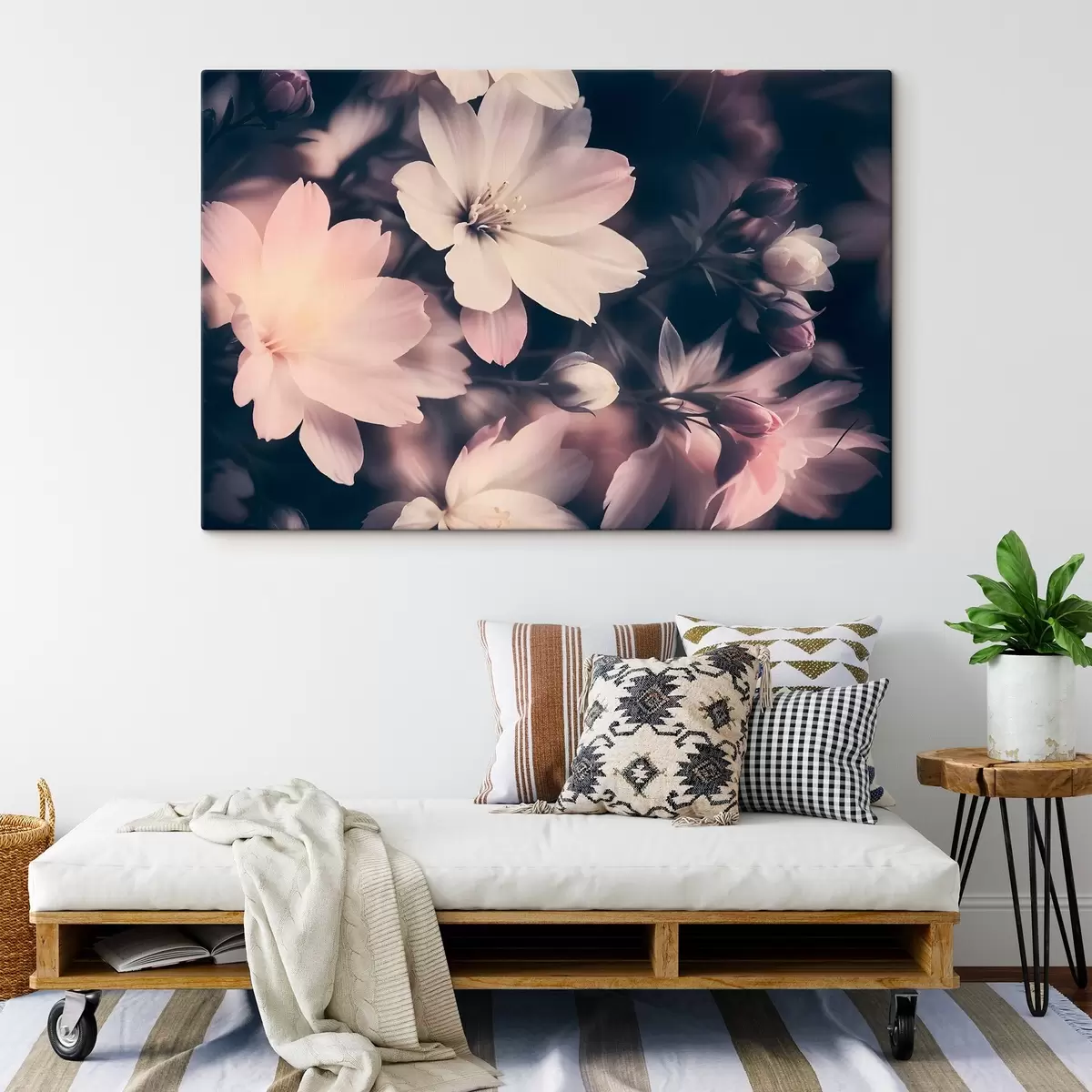 Pictură pe pânză Soft roz și alb flori de epocă lumină cu fundal neclar Nr s41084