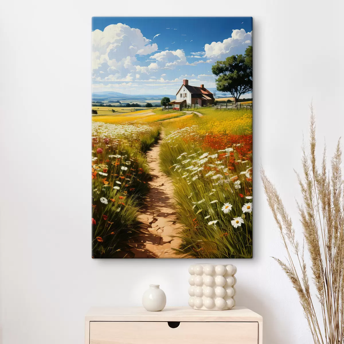 Pictură pe pânză o cărare într-un câmp înflorit și o casă Nr s41109