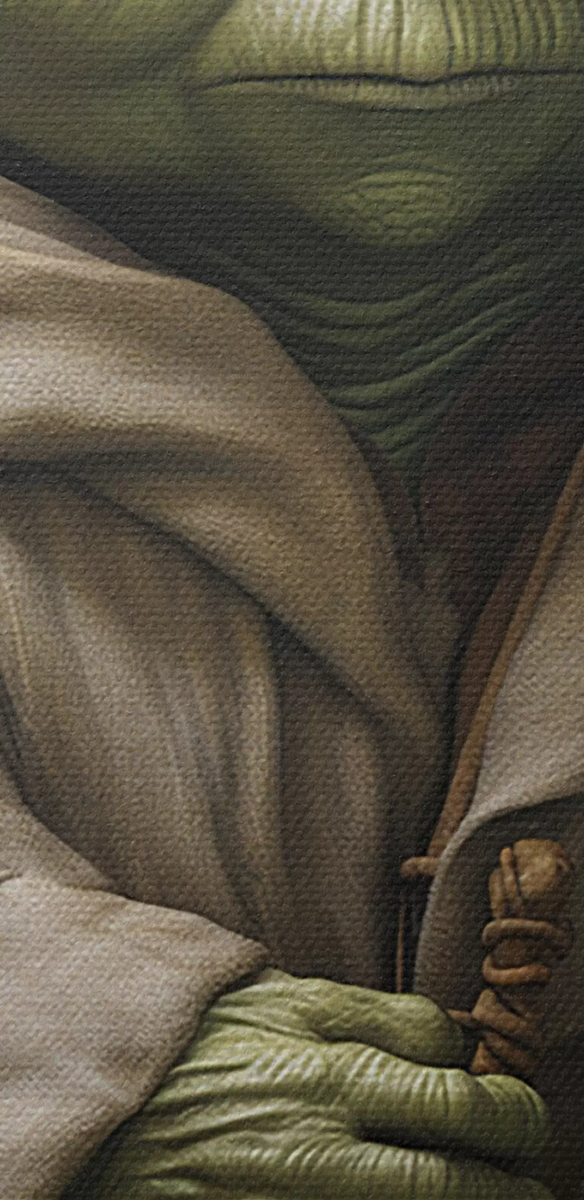 Țesătura fină a firelor de pe această pânză seamănă cu suprafața pânzelor artiștilor profesioniști.