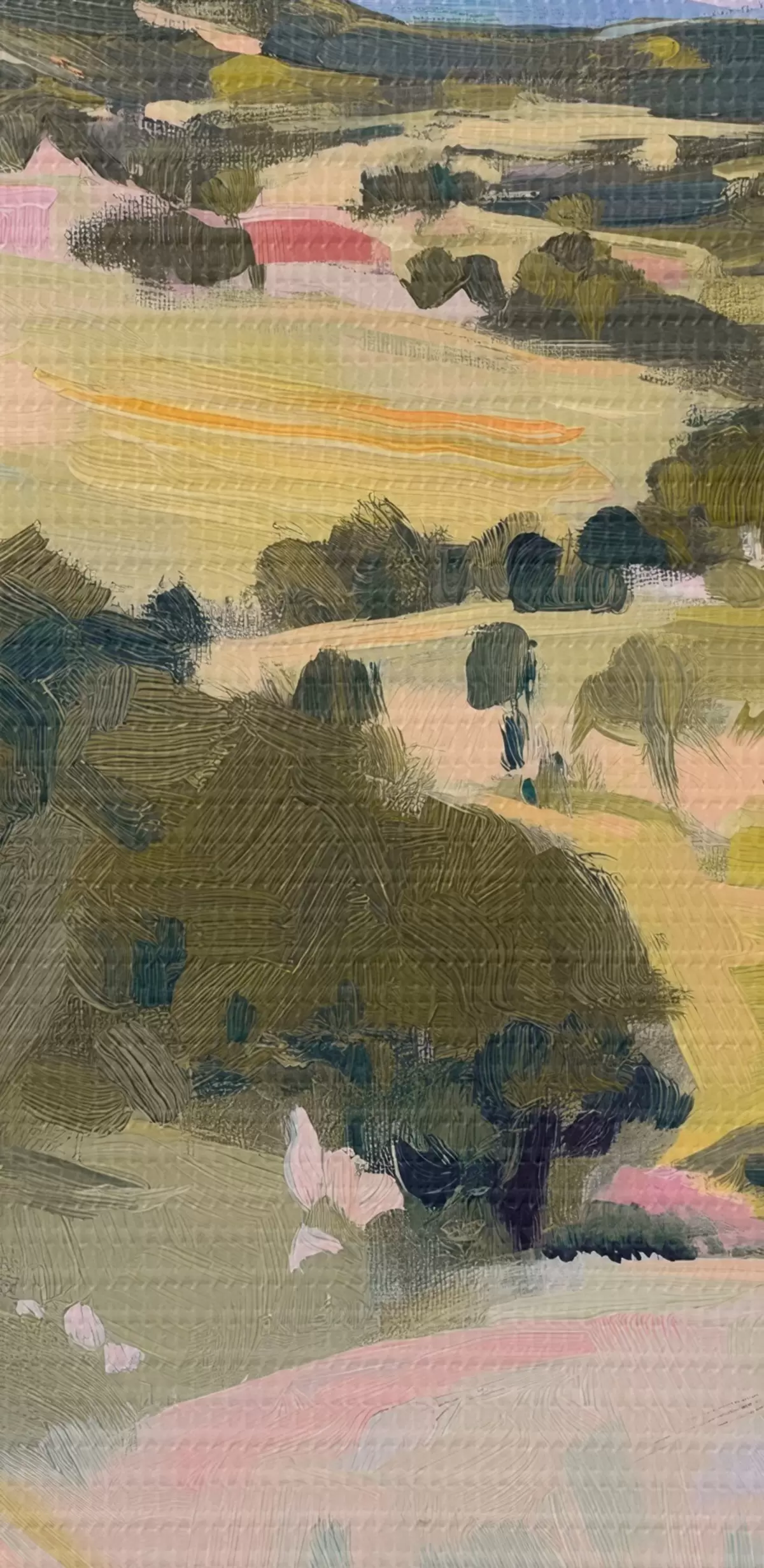 Țesătura fină a firelor de pe această pânză seamănă cu suprafața pânzelor artiștilor profesioniști.