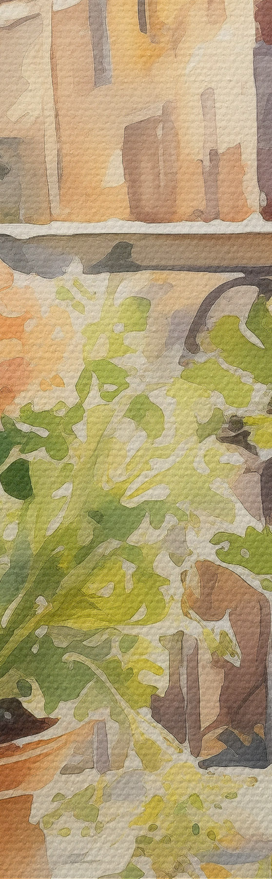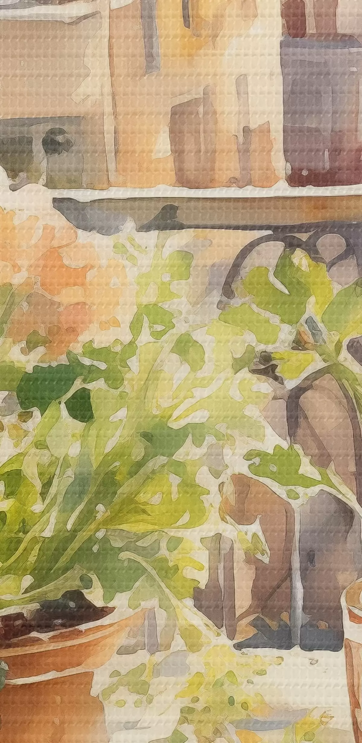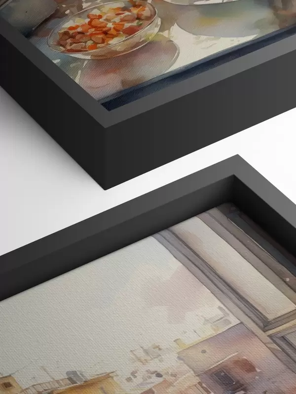 Tablouri Cină acuarelă, vedere la oraș, flori, natură, salată verde s41166