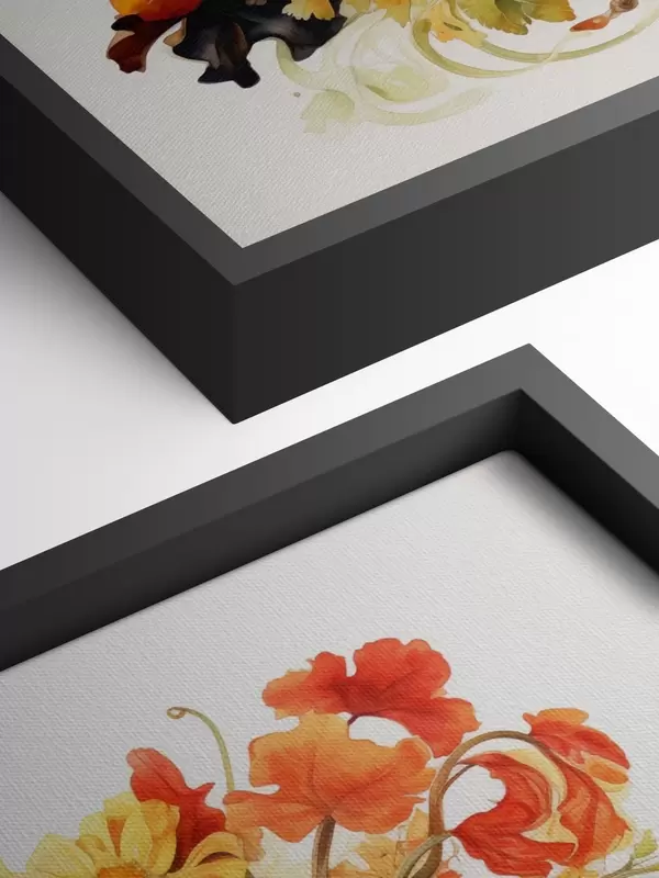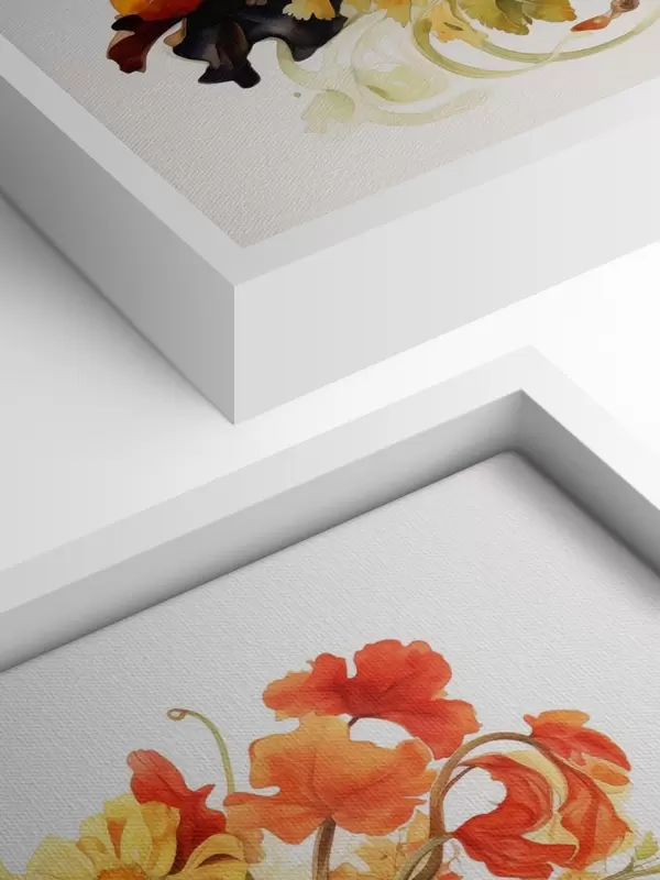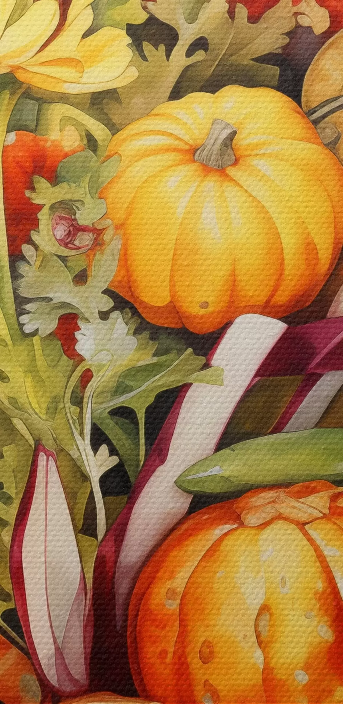 Pictură pe pânză Recoltă de toamnă, acuarelă legume, dovleci, flori Nr s41172