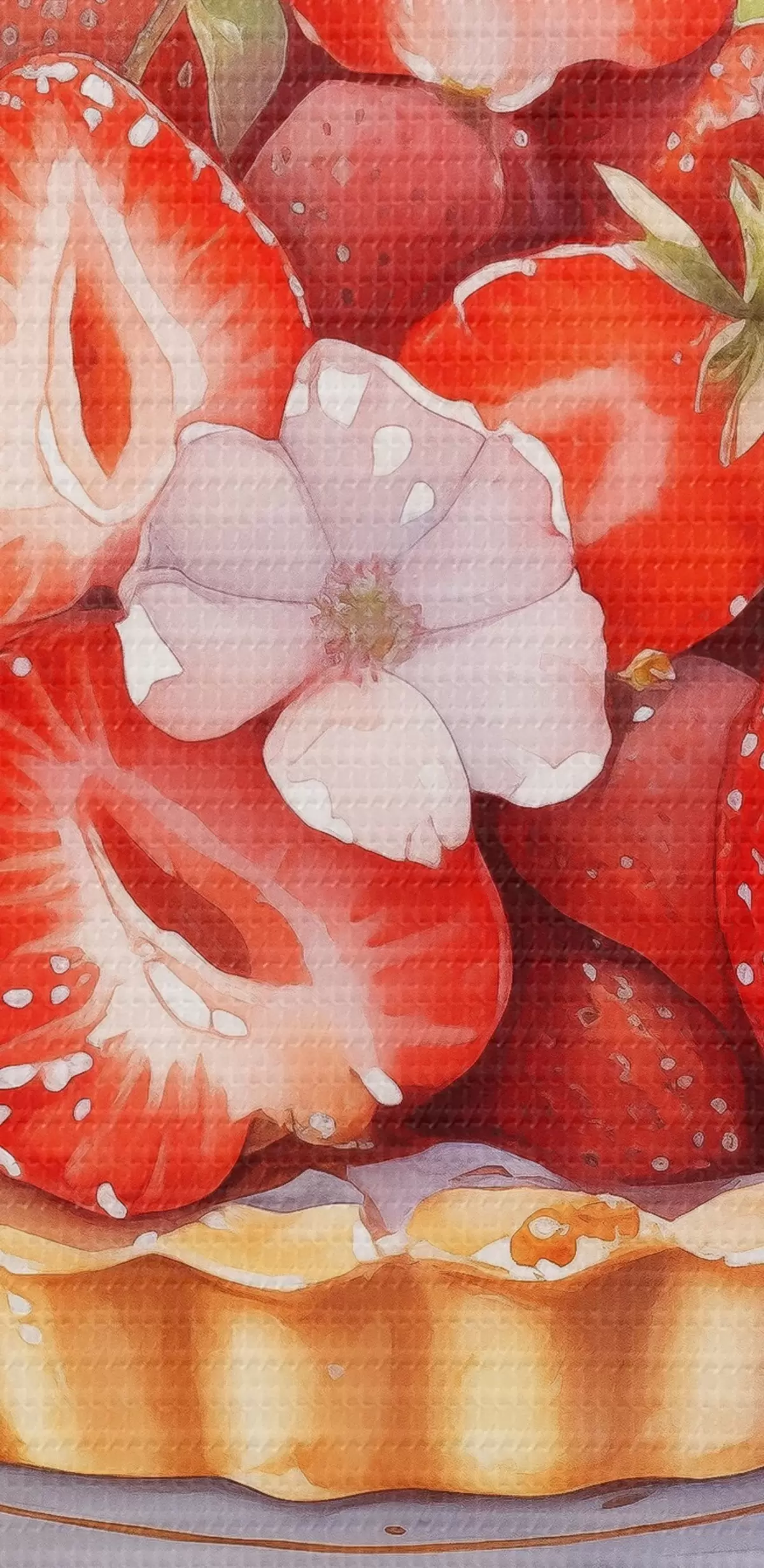 Pictură pe pânză Tartă cu căpșuni, acuarelă, floral Nr s41177