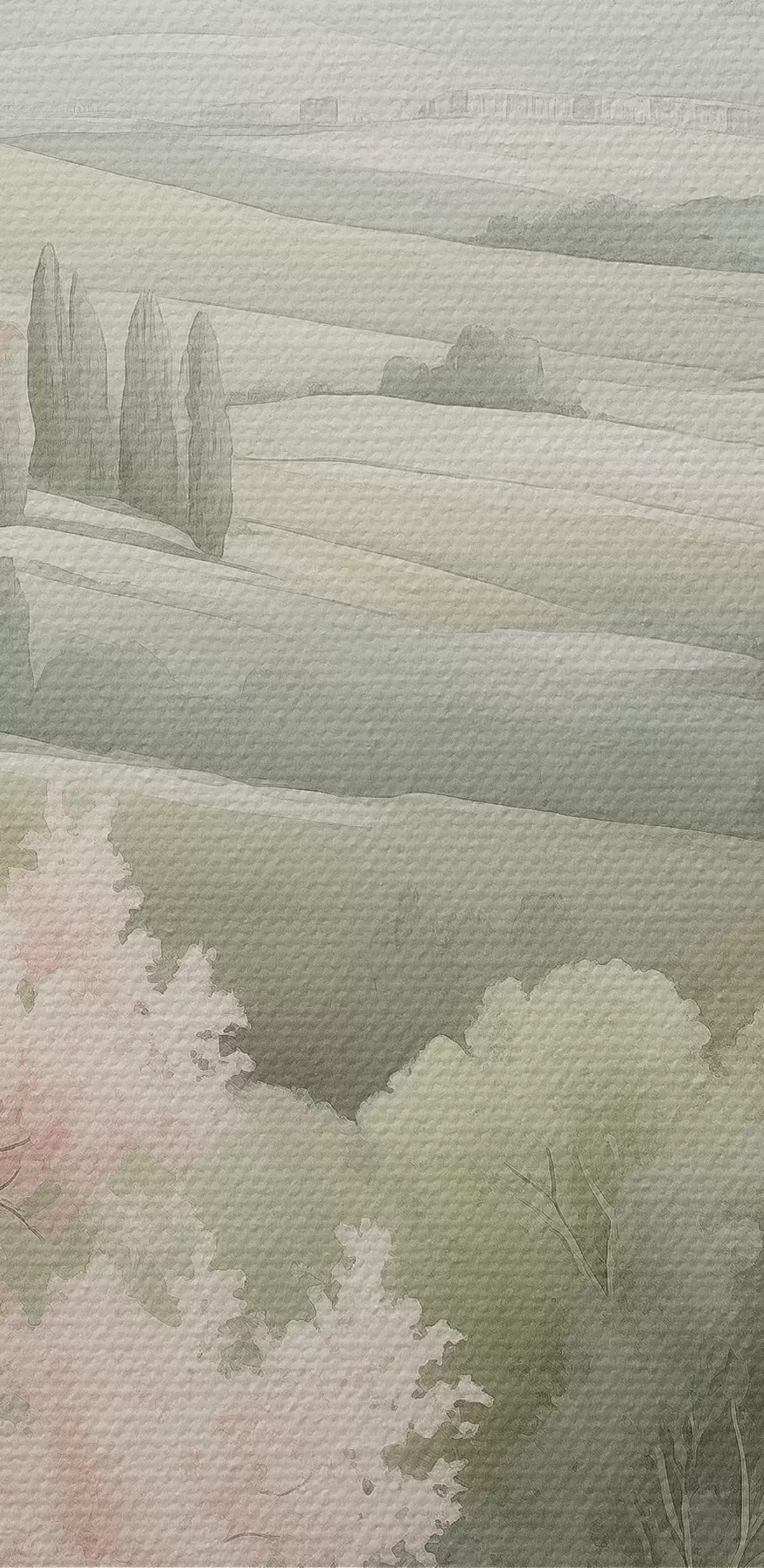 Tablouri Acuarela natura, culori moi, trandafiri, copaci, dealuri verzi s41223