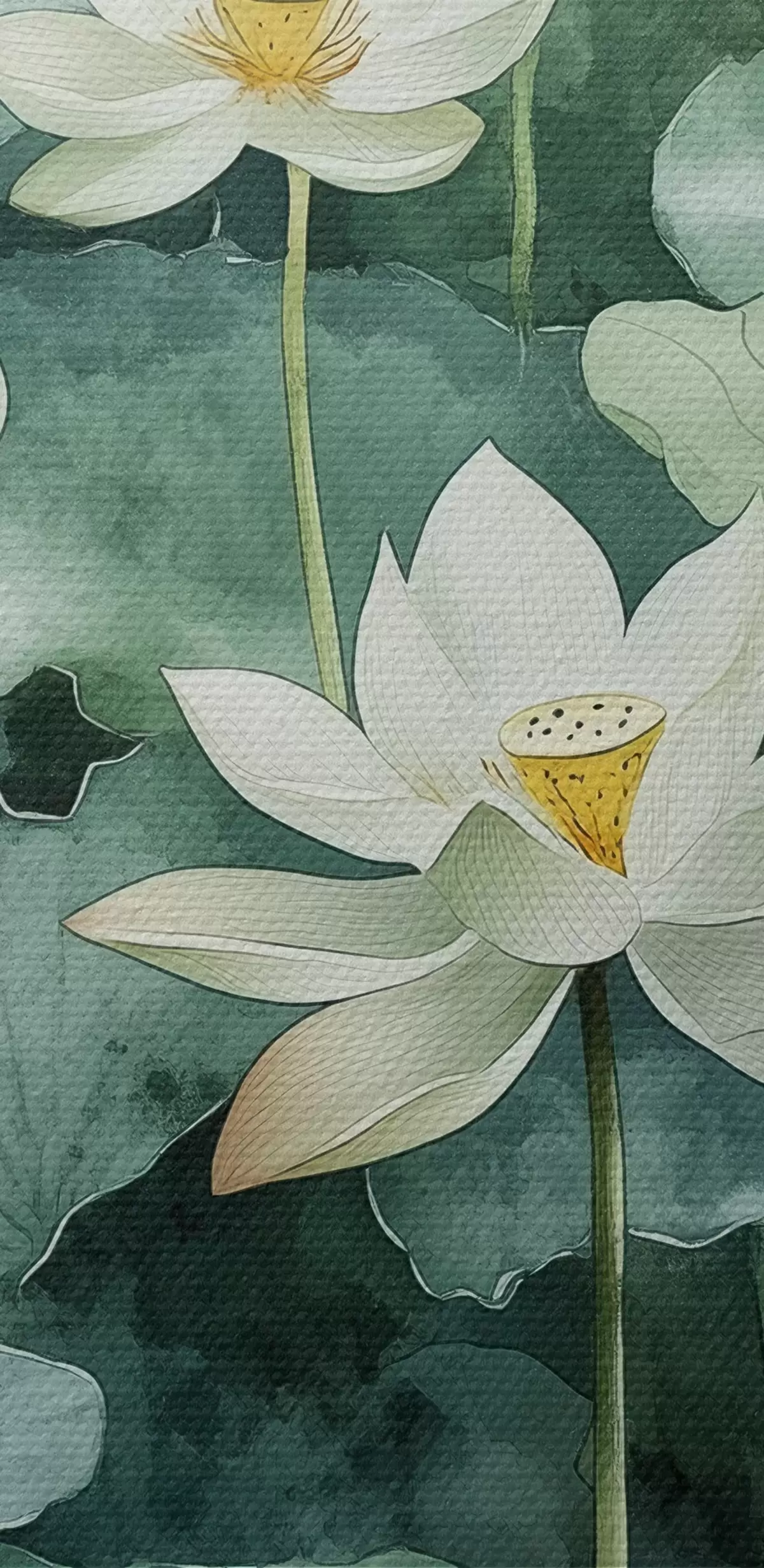 Pictură pe pânză Lotus în iaz, acuarelă, verdeață Nr s41228