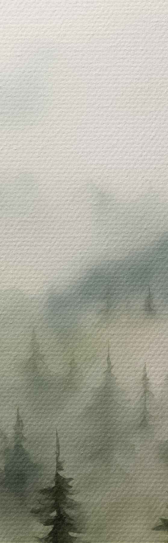 Tablouri Pădure verde pe fundal de munți munți și ceață acuarelă s41241