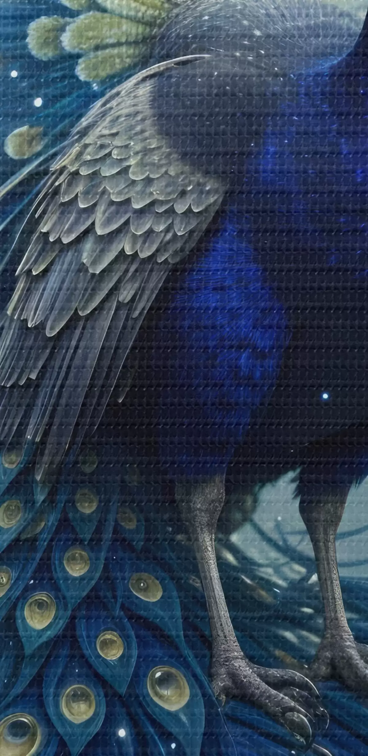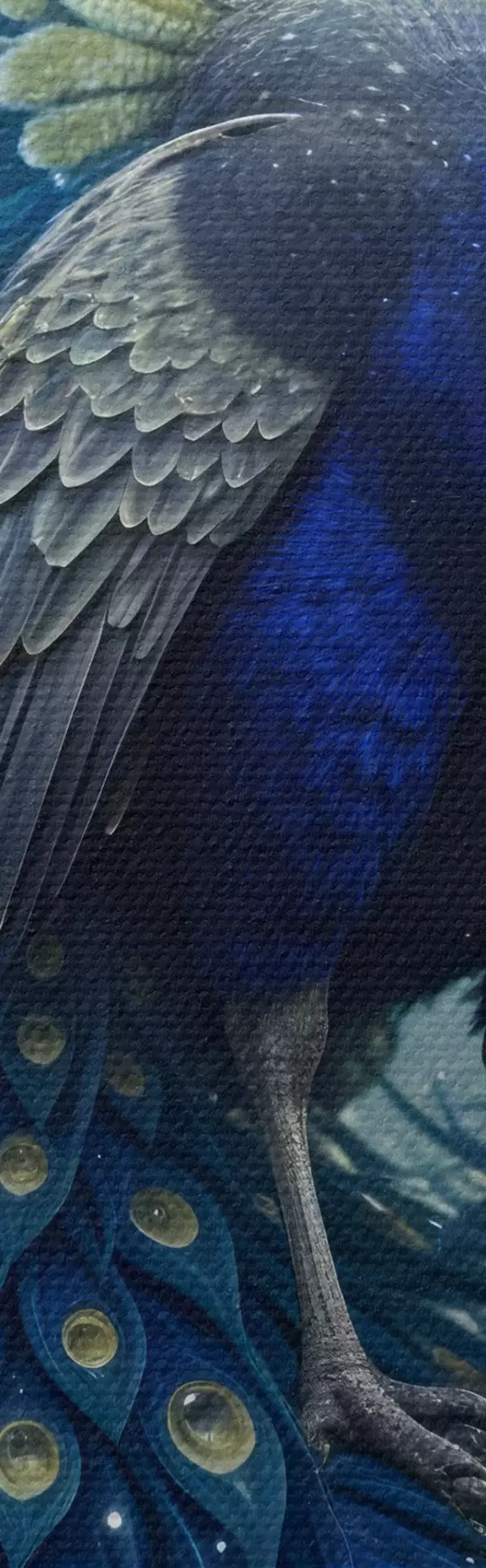 Pictură pe pânză Un păun vibrant și maiestuos pe un cer înstelat de noapte, creând o atmosferă magică și eterică Nr s41256