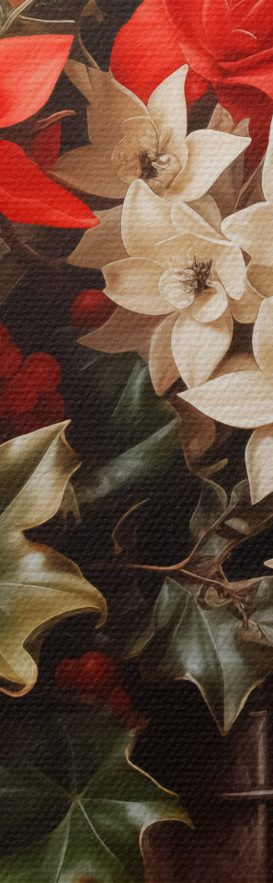 Pictură pe pânză Buchet cu holly și flori de Crăciun pe fundal întunecat Nr s41272