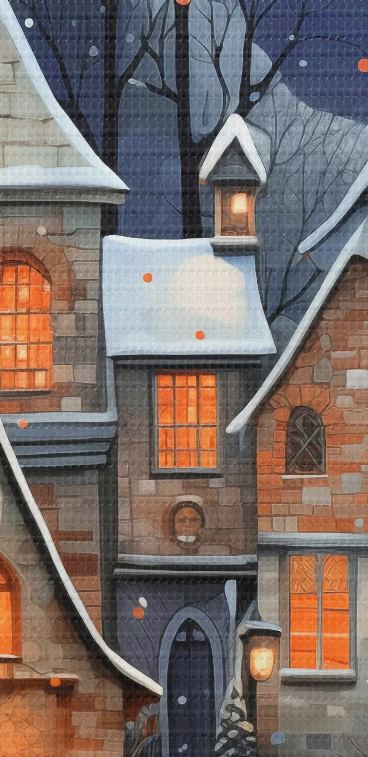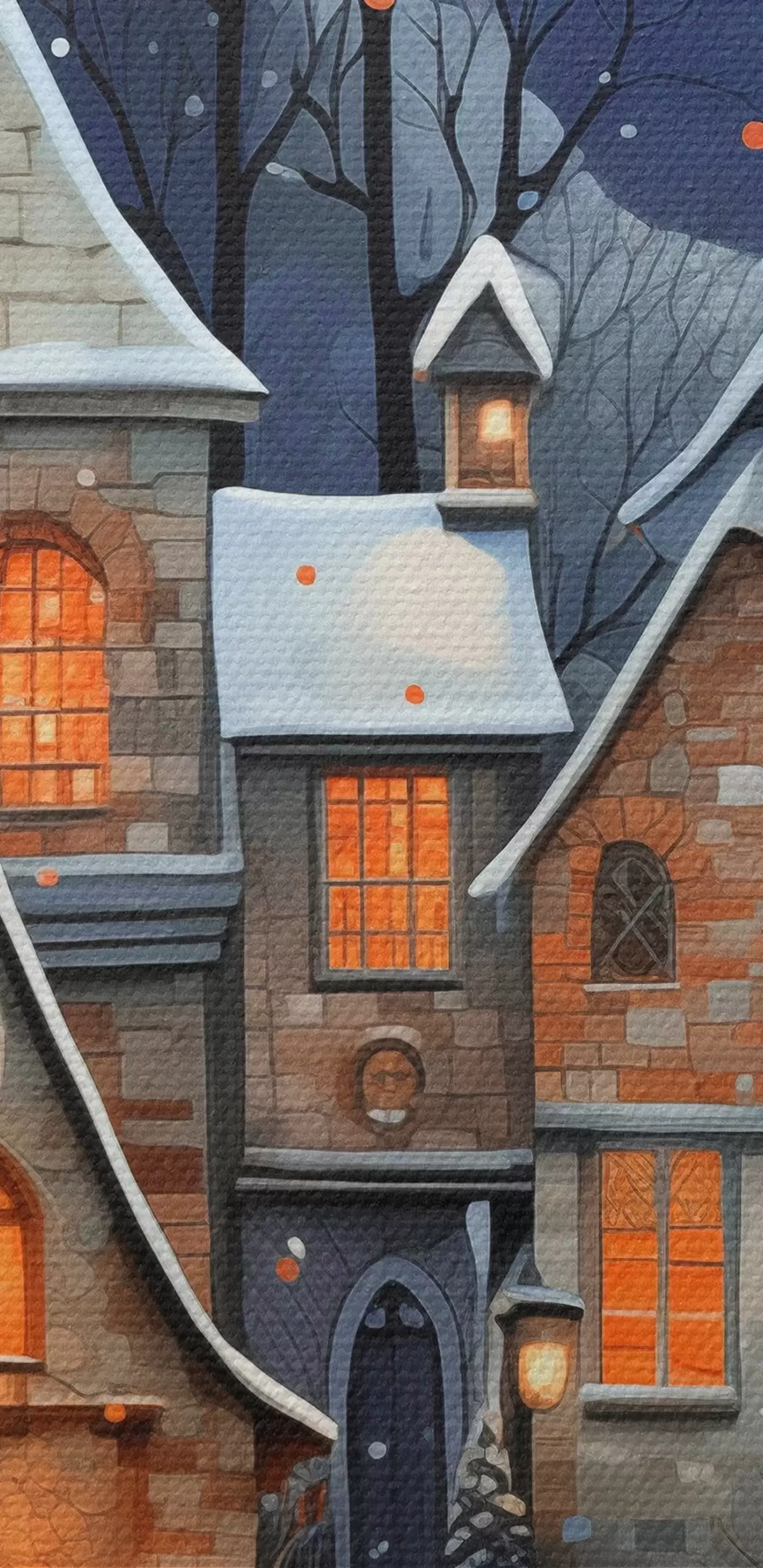 Pictură pe pânză Case în zăpadă pe fundalul cerului înstelat al nopții Nr s41276