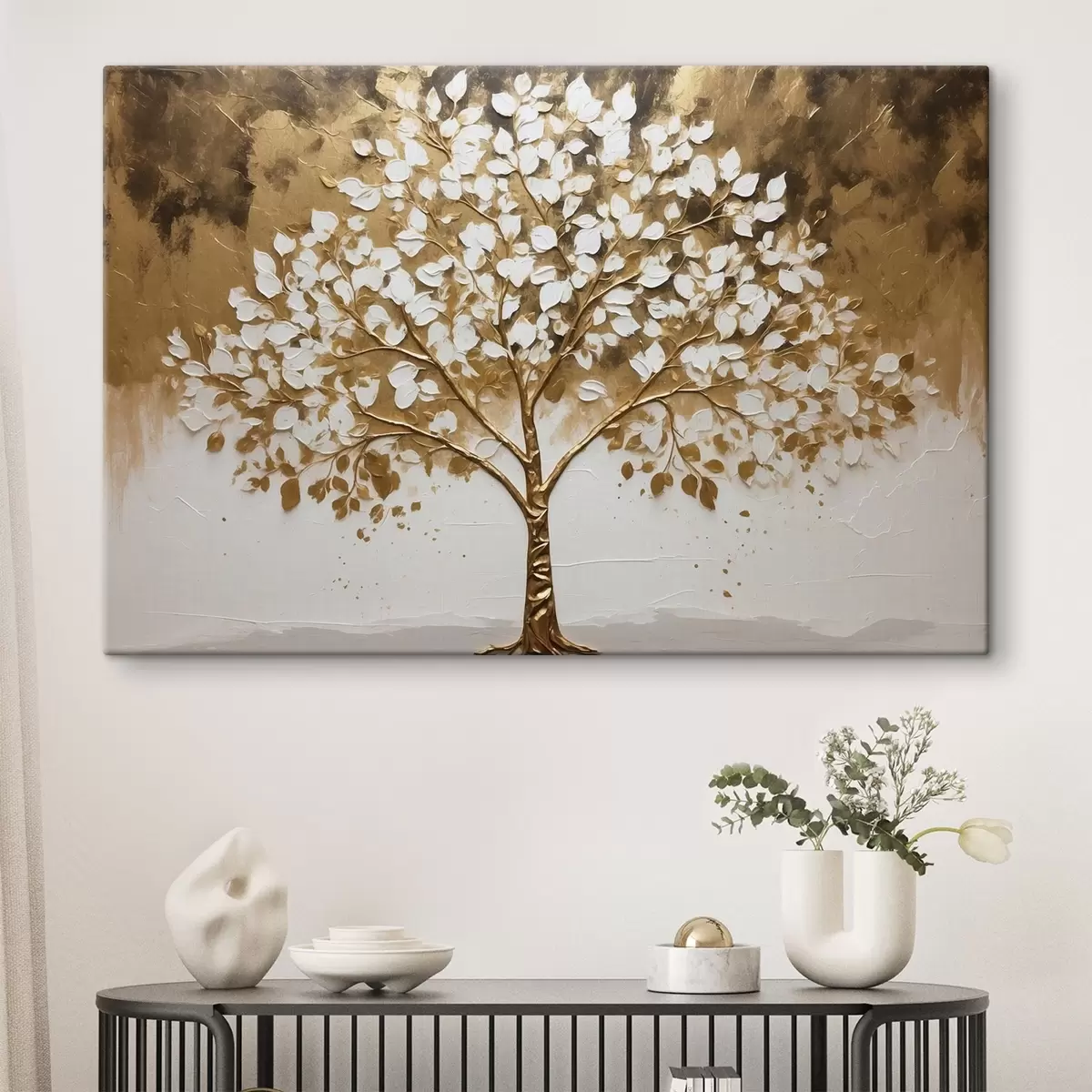 Pictură pe pânză Copac pe fundal alb și galben Nr s41307