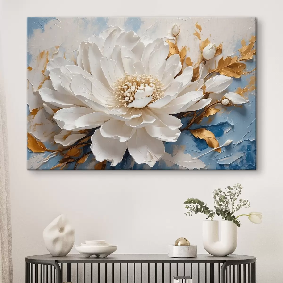 Pictură pe pânză Floare albă pe fundal alb-albastru Nr s41311