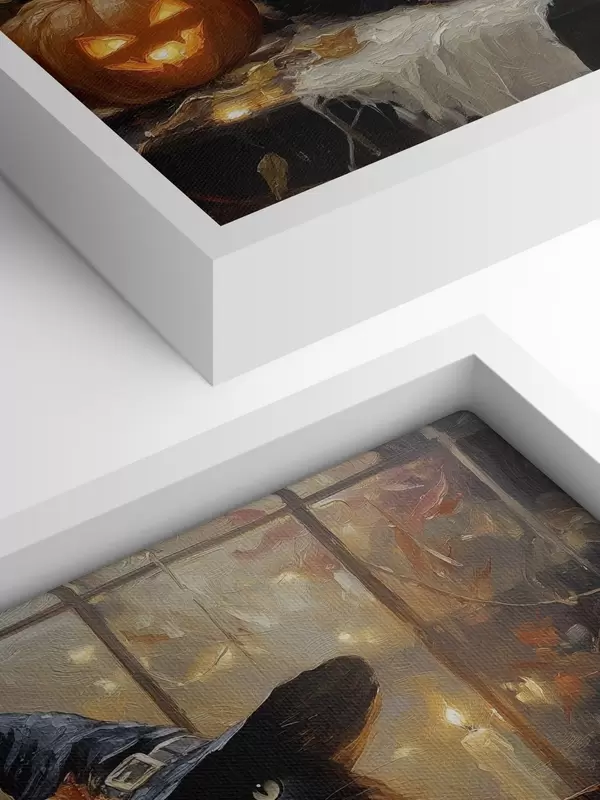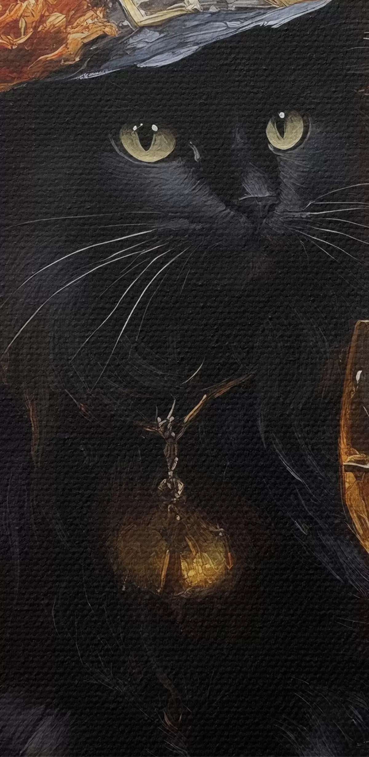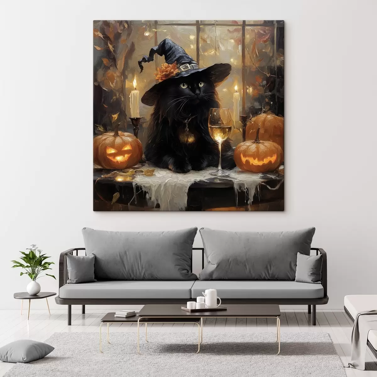 Pictură pe pânză Pisică neagră cu dovleci Nr s41349