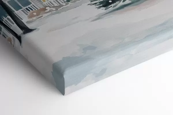 Pictură pe pânză Oraș de iarnă, brad decorat, Crăciun, acuarelă Nr s41364