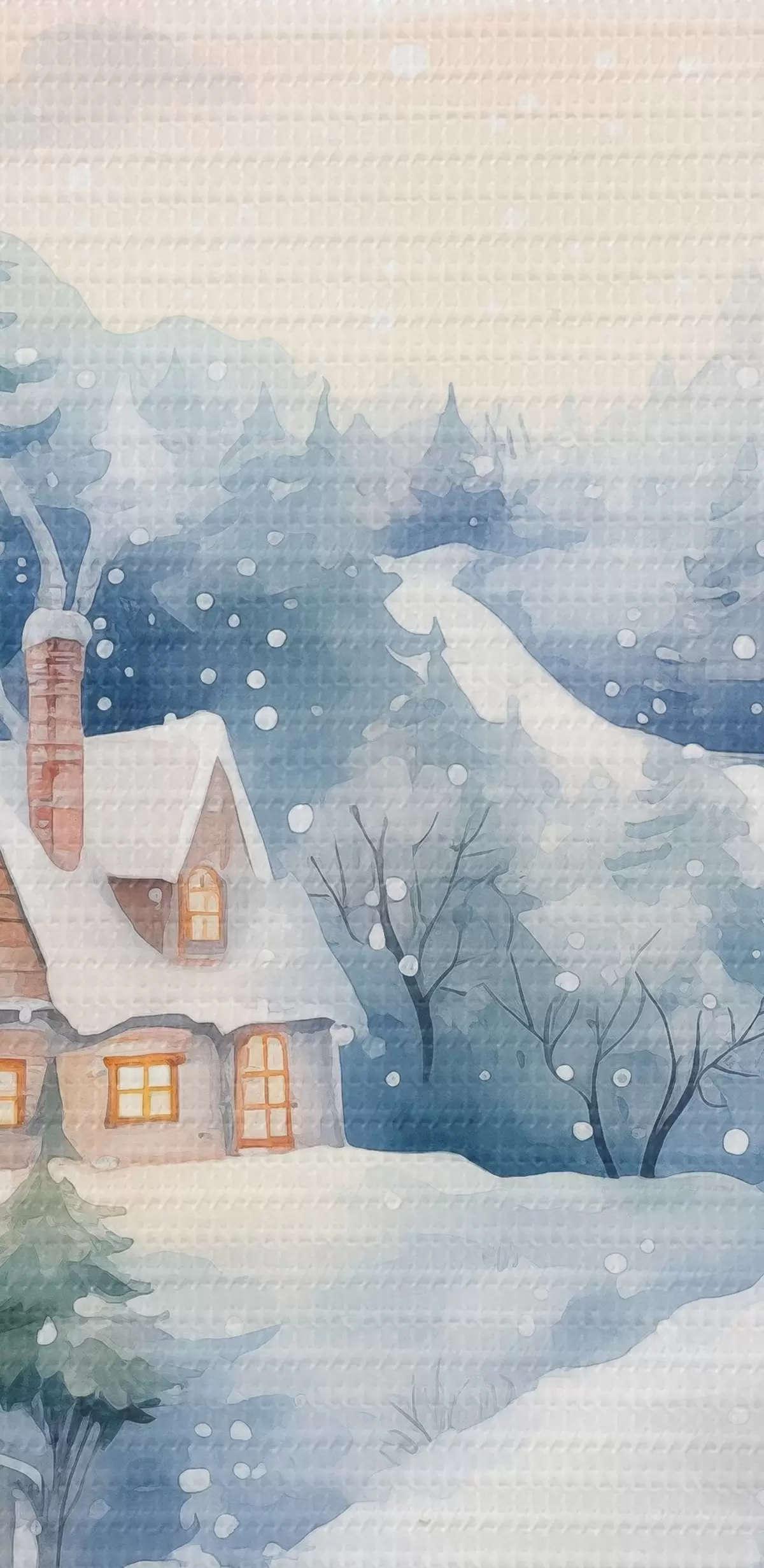Tablouri Peisaj de iarnă acuarelă, pădure de pini, case s41387