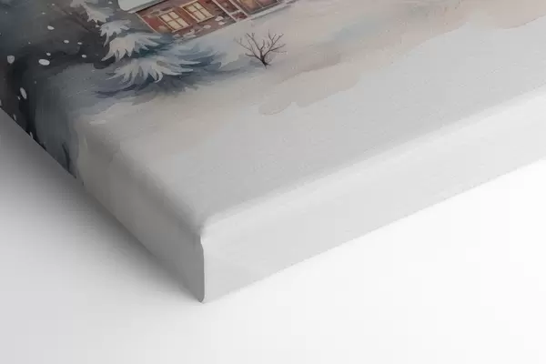 Pictură pe pânză Peisaj de iarnă, pădure de pini, case frumoase, acuarelă, susnet Nr s41390