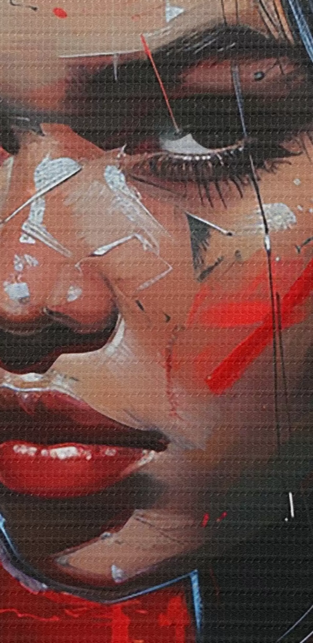 Tablouri Fata cu vopsele pe un fundal roșu s41413