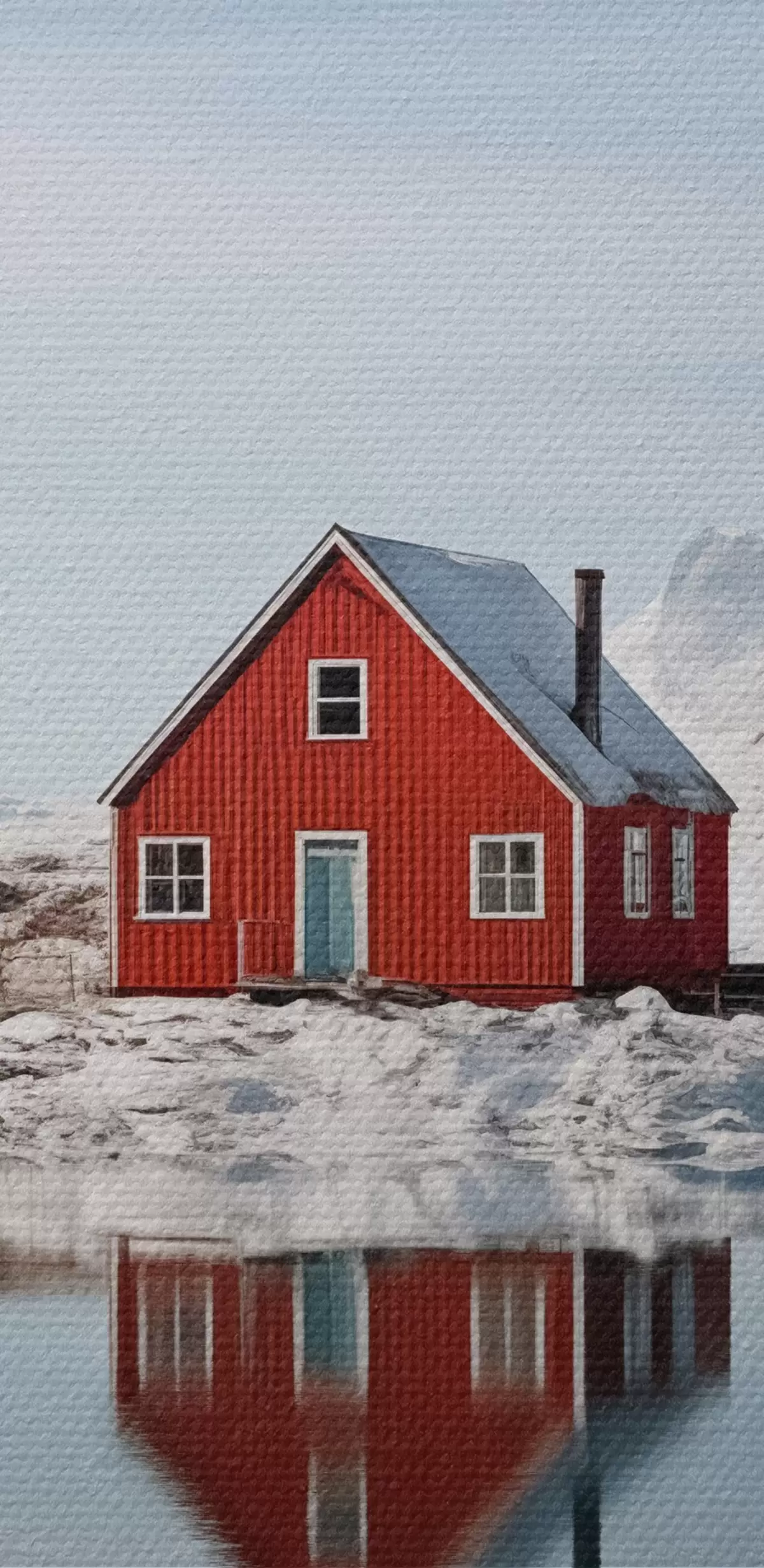 Tablouri Minimalist peisaj de iarnă roșu casa de lângă lac s41437