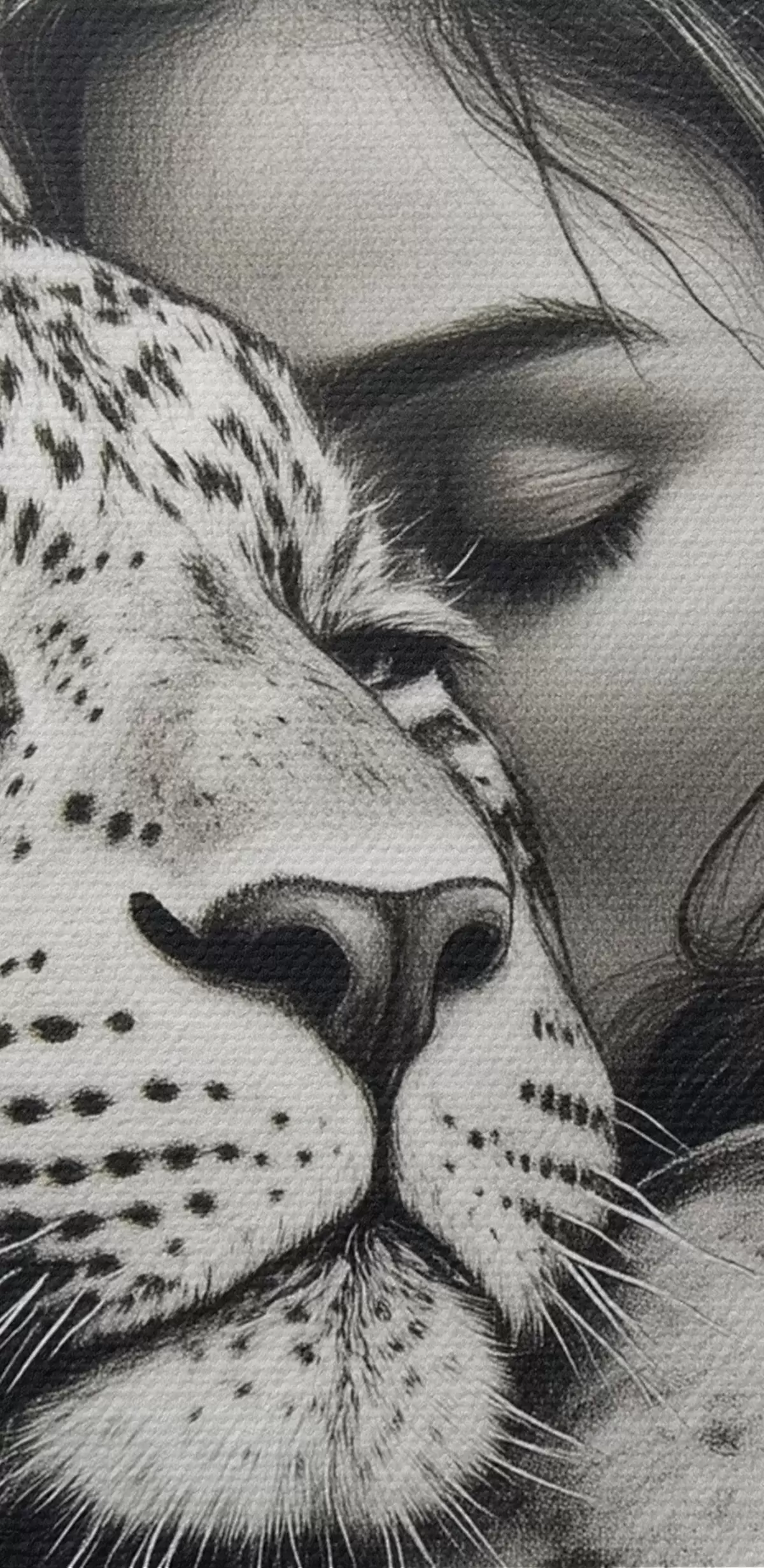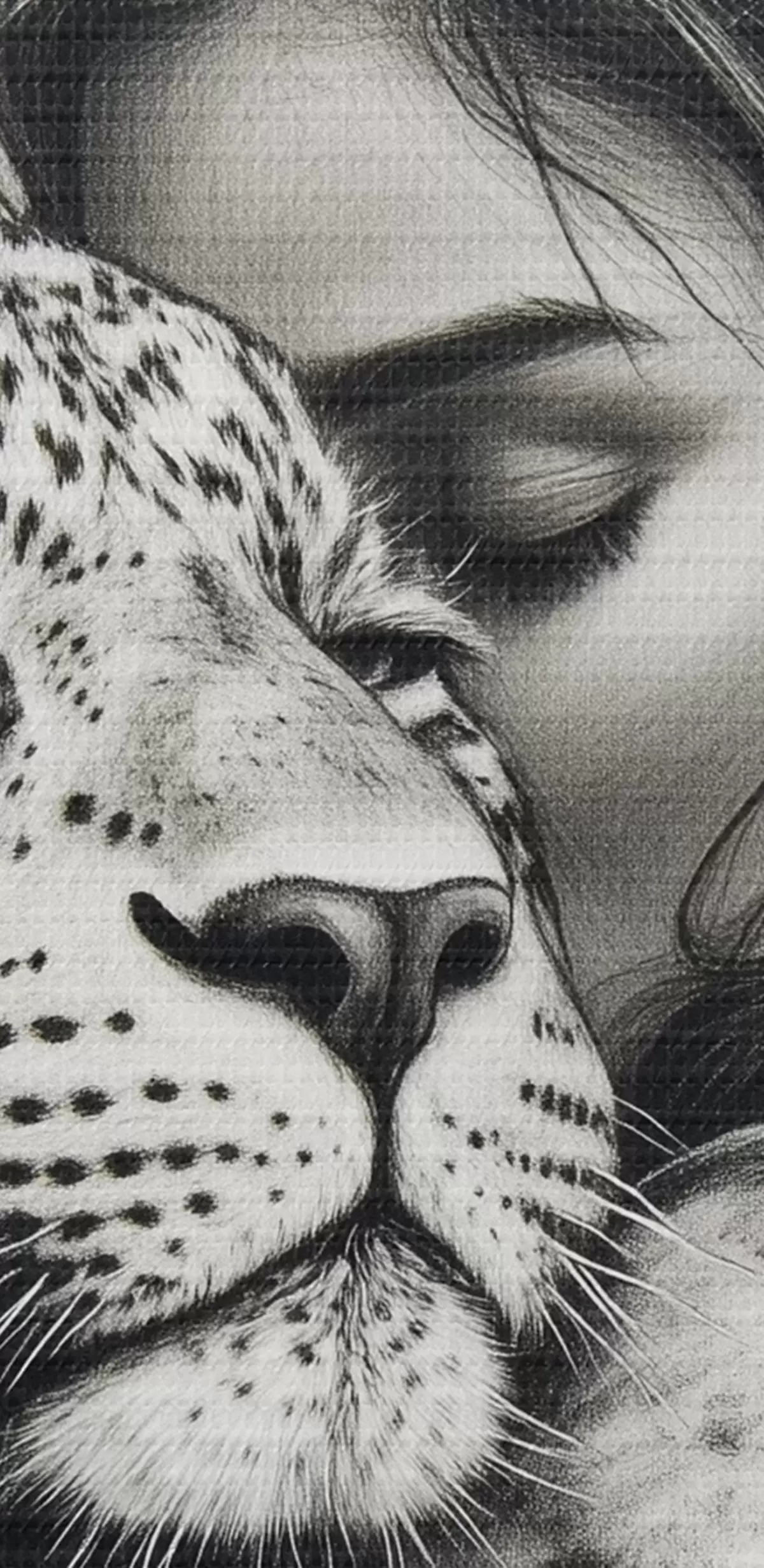 Pictură pe pânză Femeie cu leopard, animale sălbatice, desen în creion, alb-negru Nr s41455
