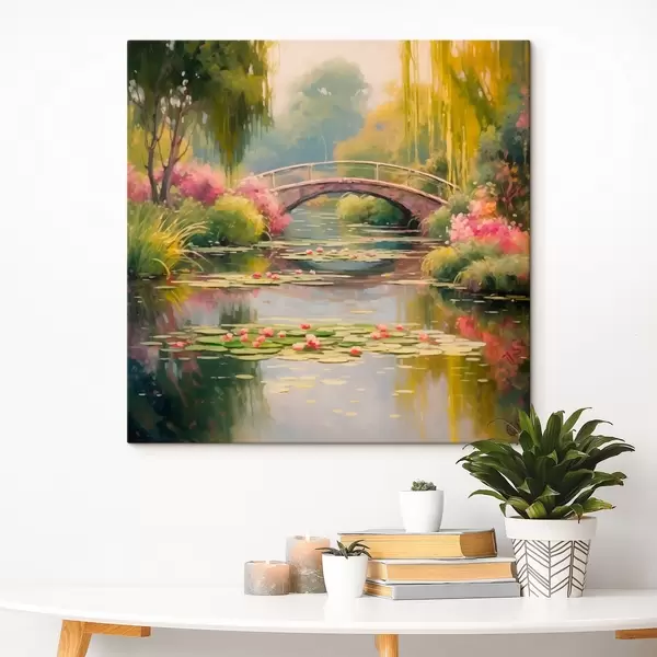 Pictură pe pânză Pod de grădină peste lac cu nuferi Nr s41503