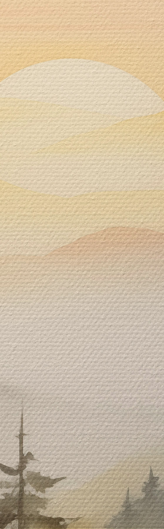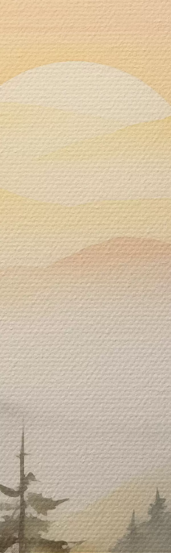 Tablouri Toamna munți peisaj, pădure de pini, apus de soare, acuarelă  s41645