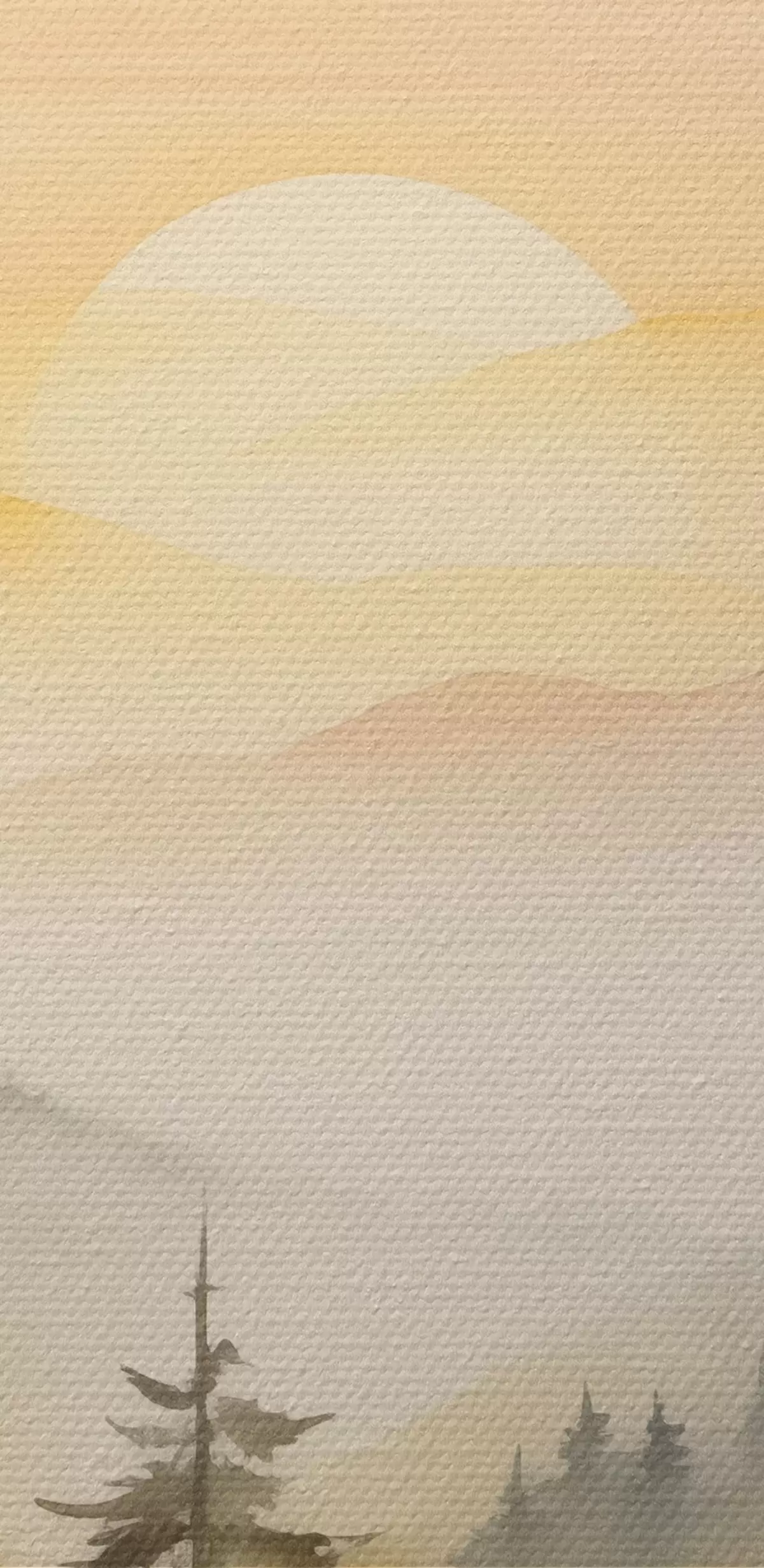 Tablouri Toamna munți peisaj, pădure de pini, apus de soare, acuarelă  s41645