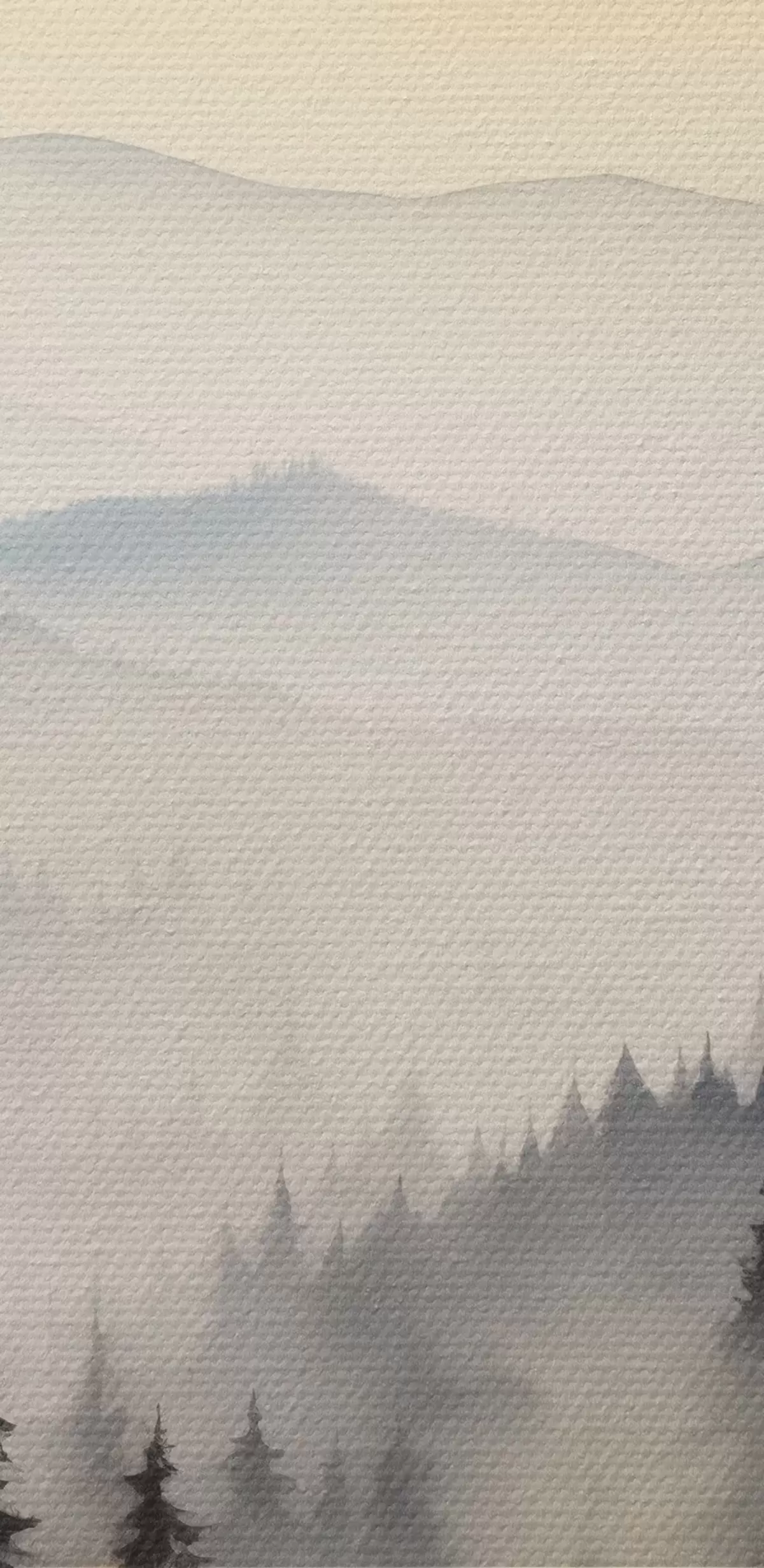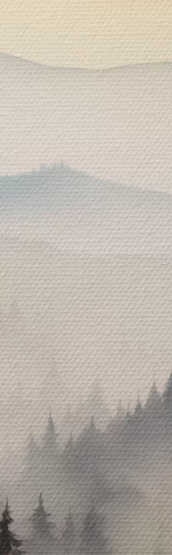 Tablouri Munți frumoși în ceață, pădure de toamnă, acuarelă s41646