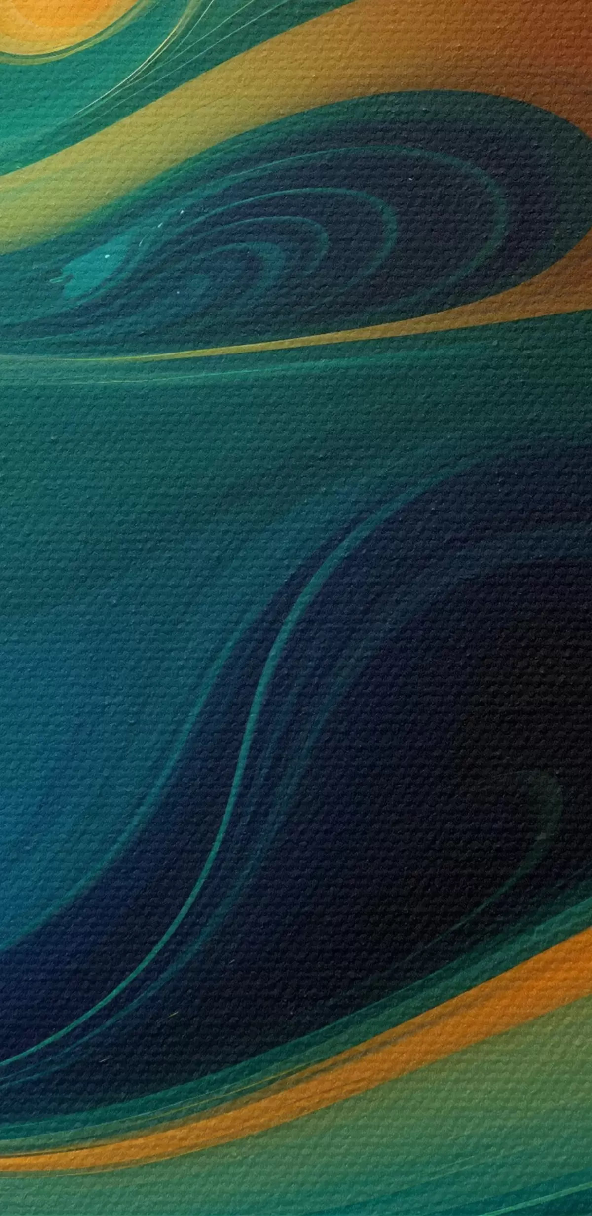 Pictură pe pânză Modele abstracte spiralate în nuanțe de verde, albastru și portocaliu, cu forme și texturi fluide, organice Nr s41737