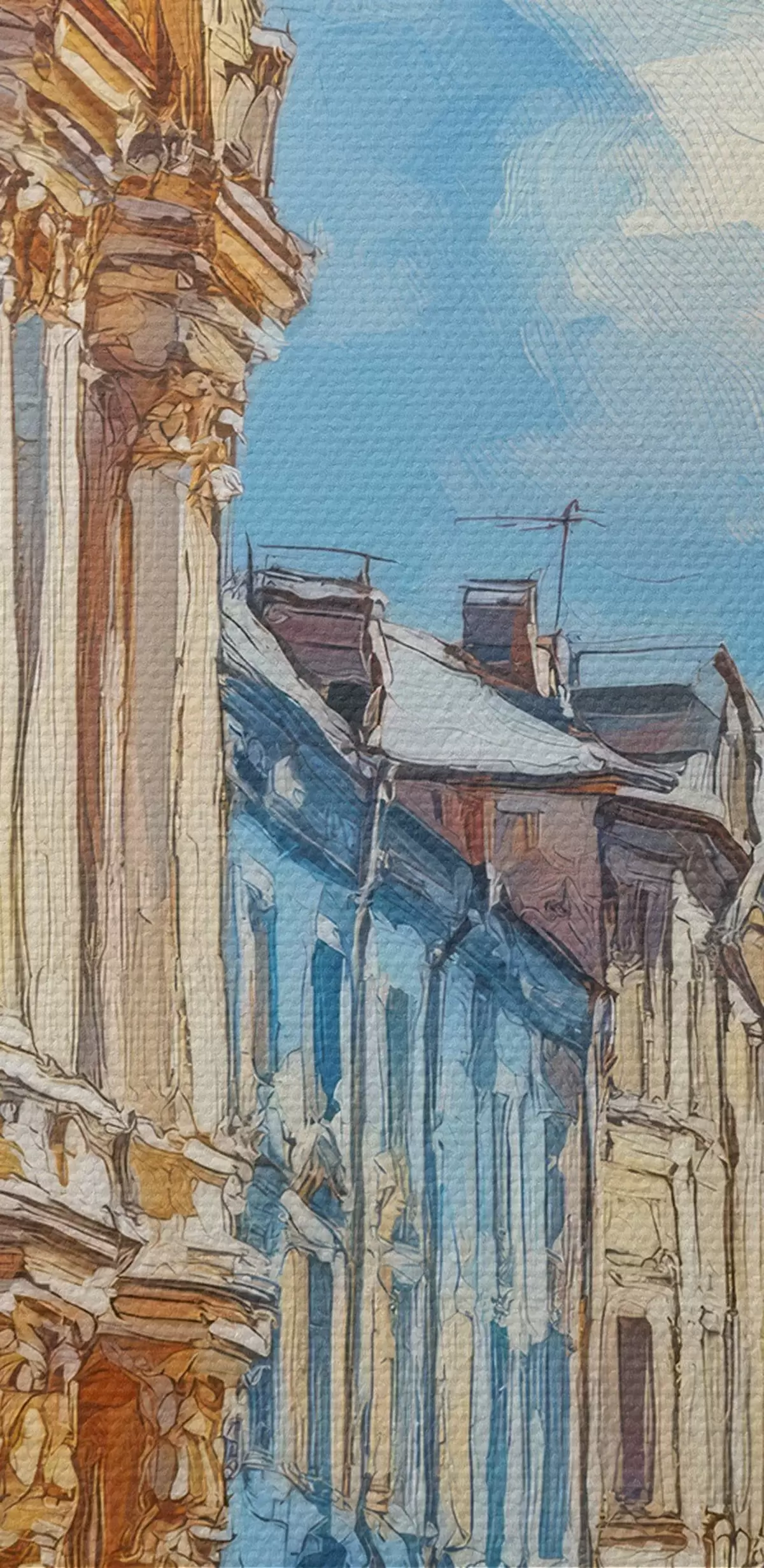 Tablouri Strada orașului pe o zi însorită, în stilul vopselei în ulei s41751