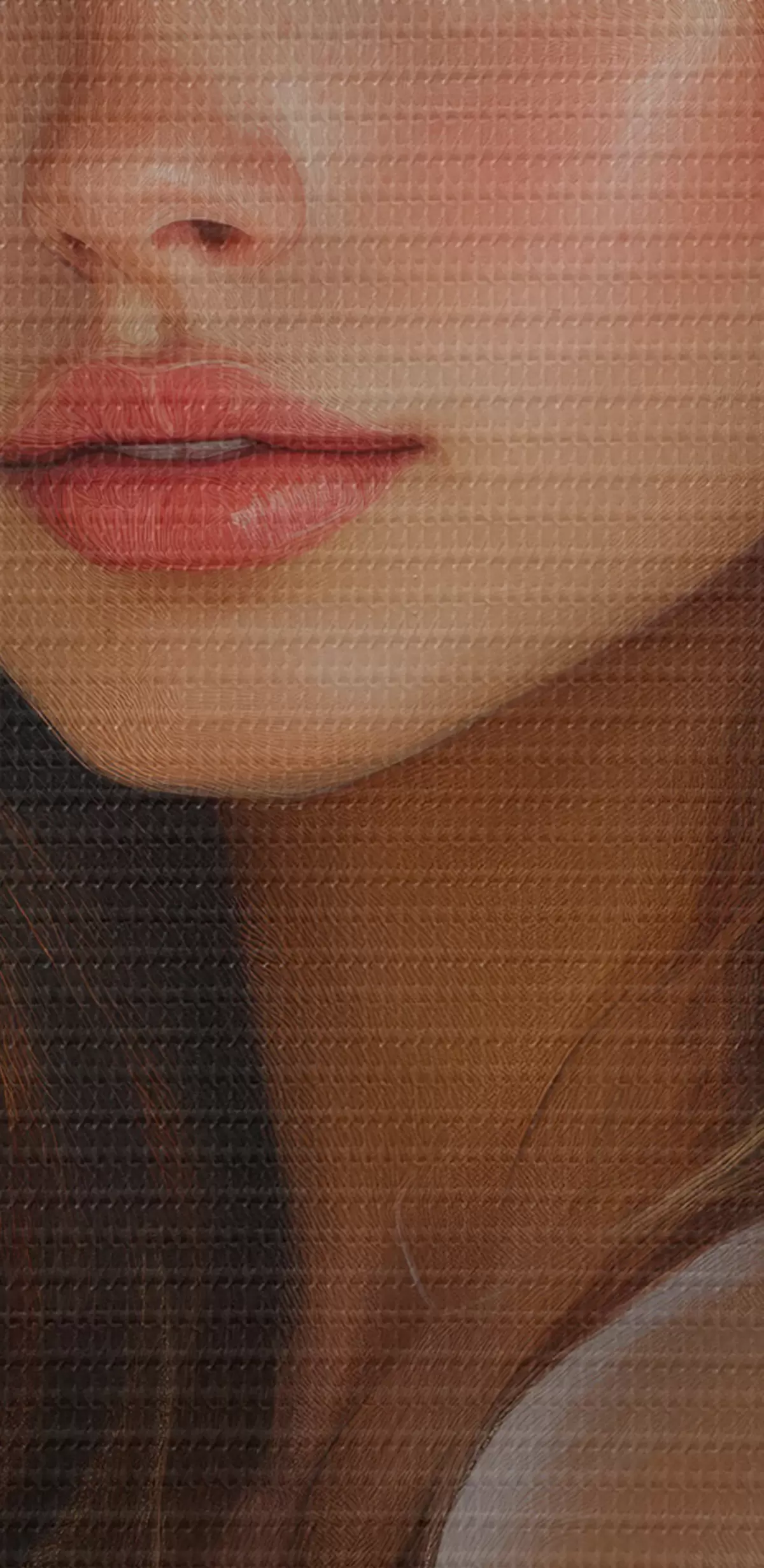 Țesătura fină a firelor de pe această pânză seamănă cu suprafața pânzelor artiștilor profesioniști.