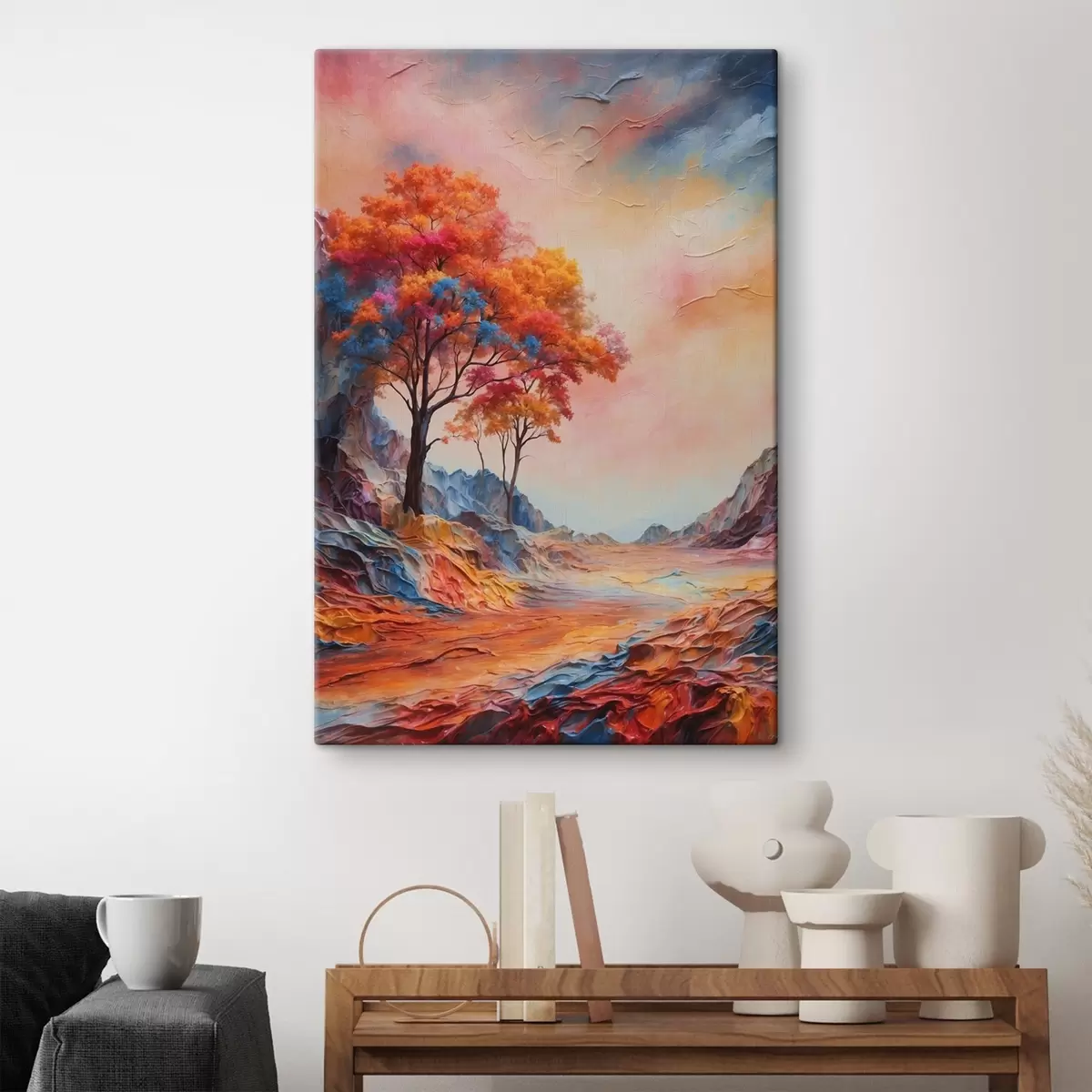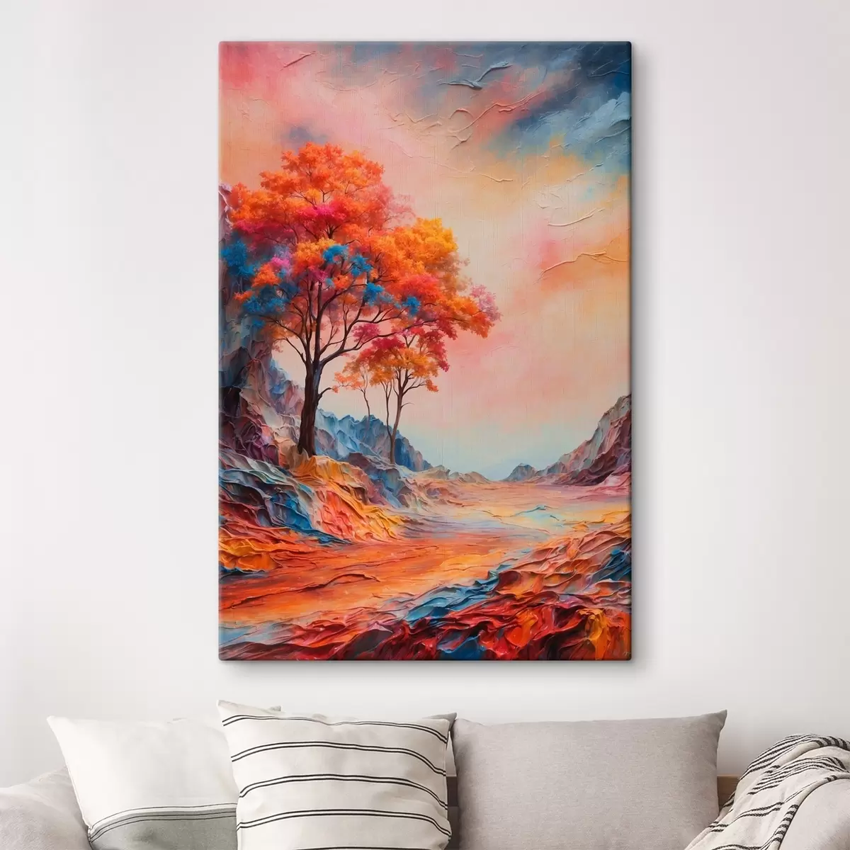 Pictură pe pânză Copaci și munți abstracți multicolori Nr s41772