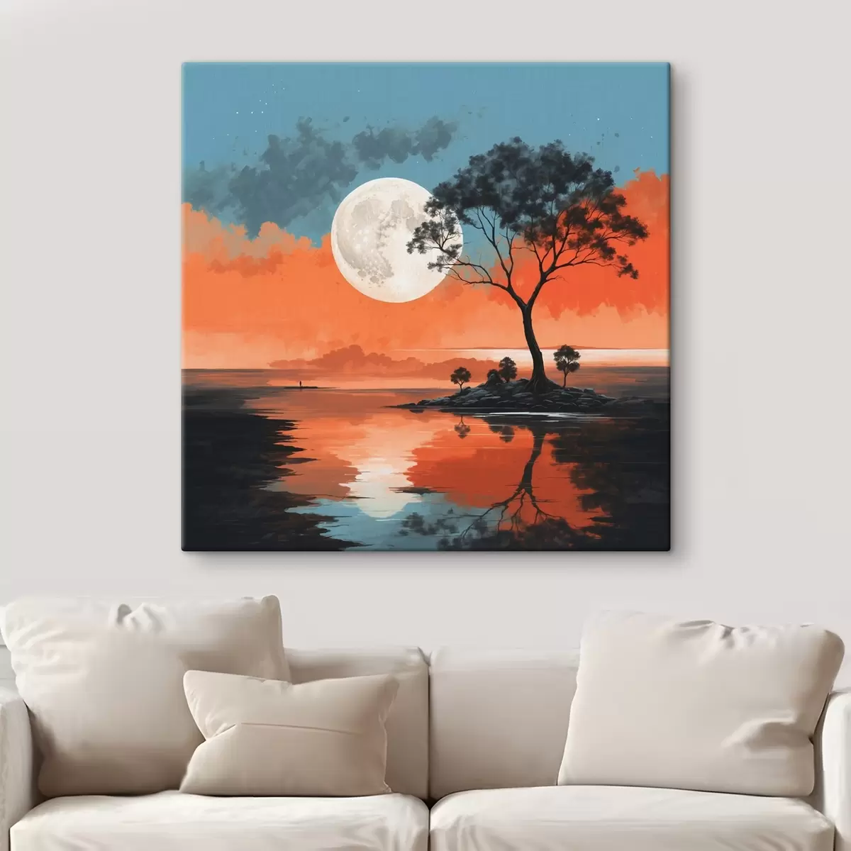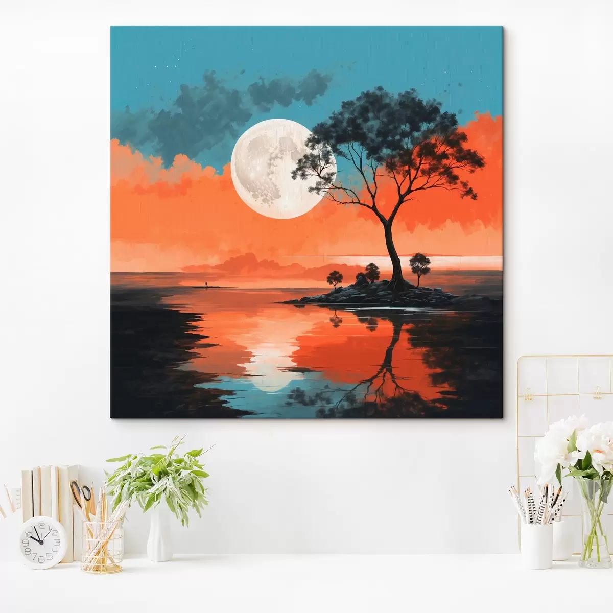 Pictură pe pânză Copac în mijlocul unui lac pe fundalul lunii Nr s41775