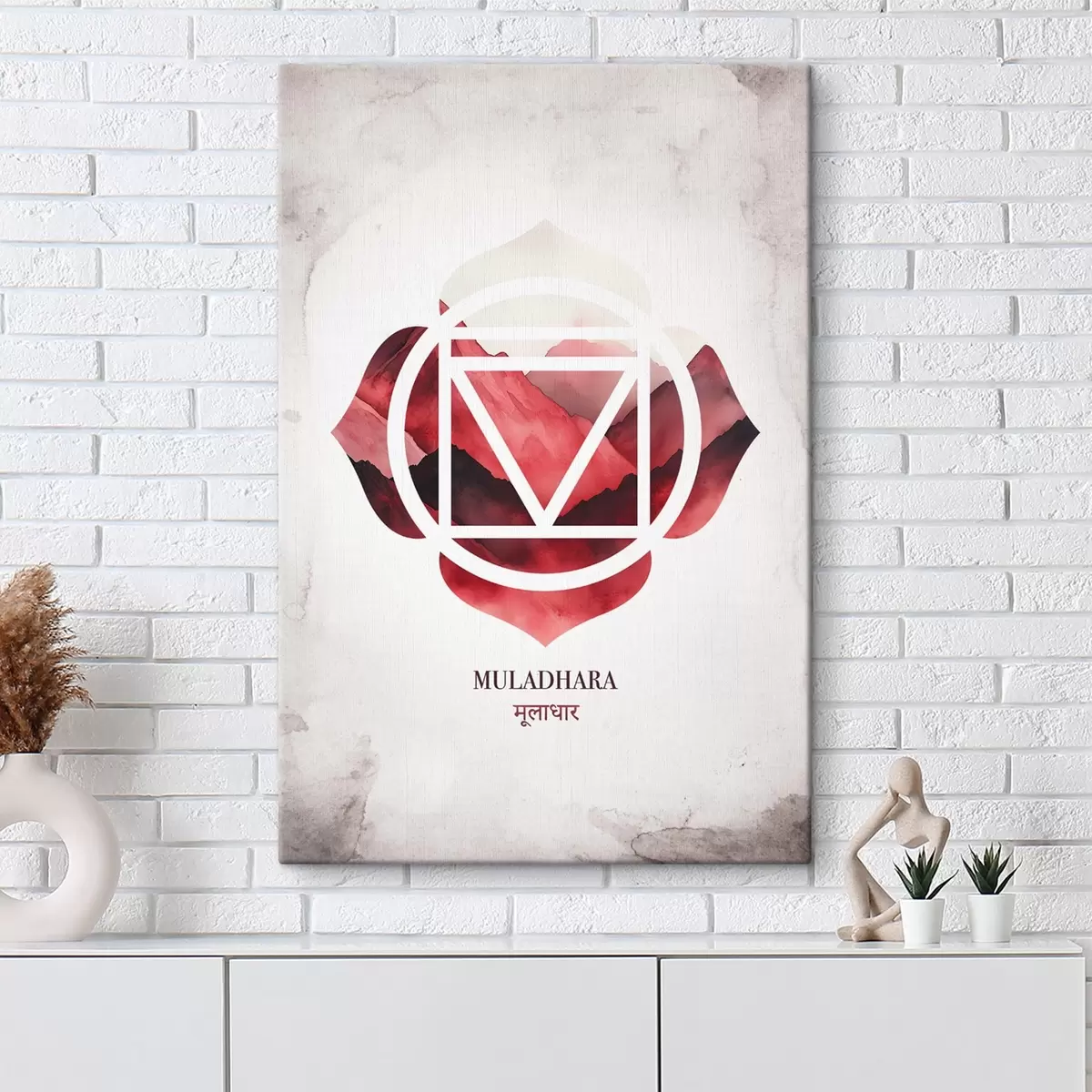 Pictură pe pânză Muladhara chakra, chakra roșie, esoteric, meditație, buddhism, munți în stil acuarelă Nr s41880