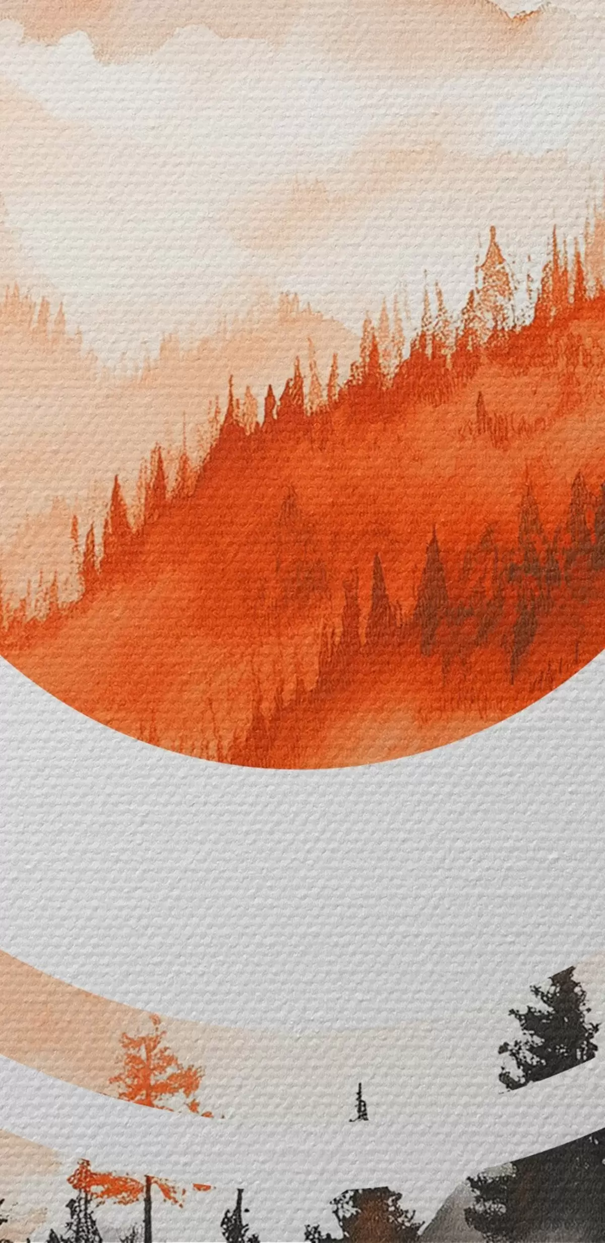 Tablouri Svadhisthana chakra, chakra portocalie, esoteric, meditație, buddhism, munți în stil acuarelă s41881