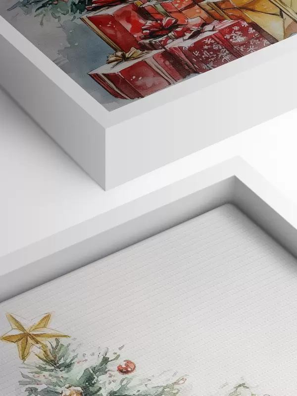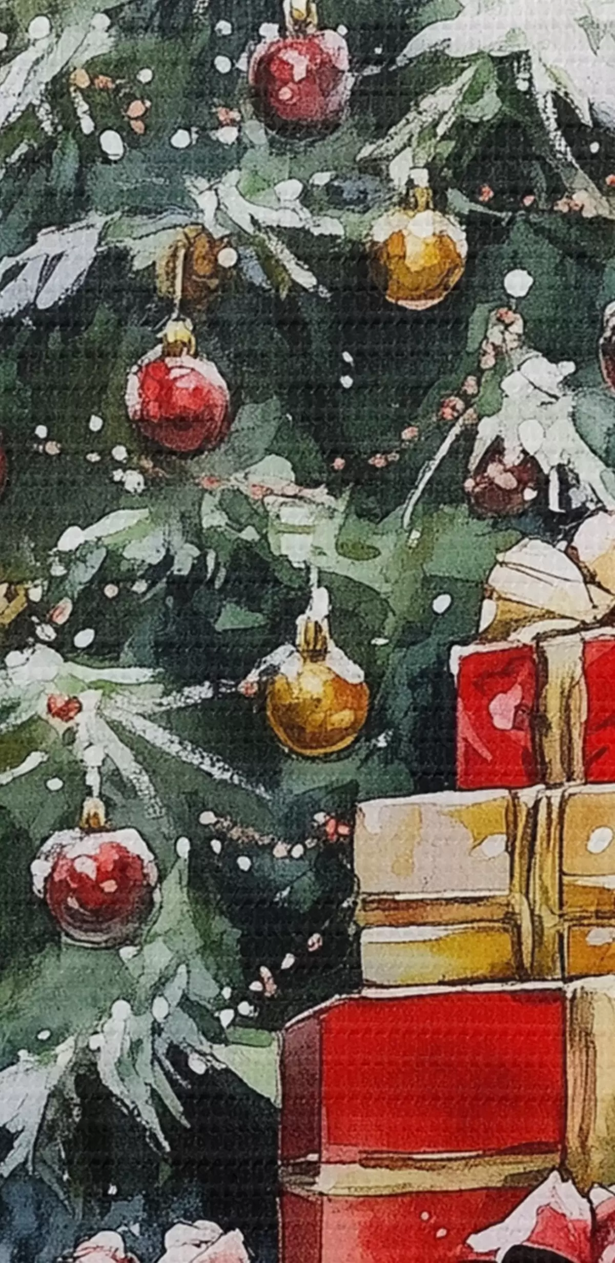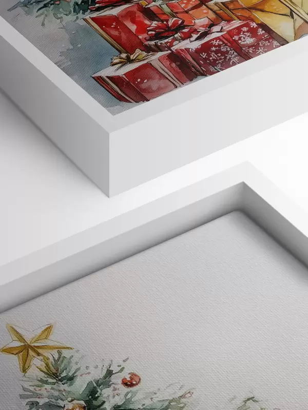 Tablouri Pom de Crăciun festiv cu cadouri împachetate, zăpadă, stil acuarelă s41953