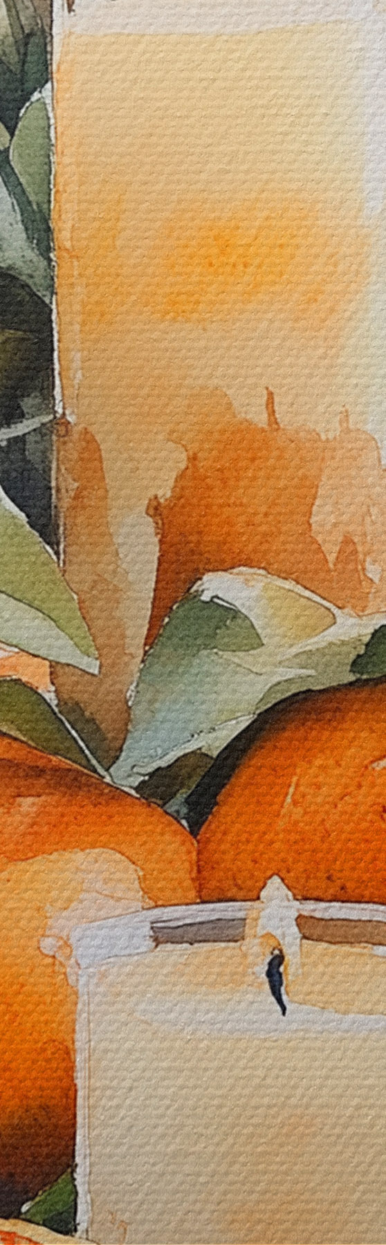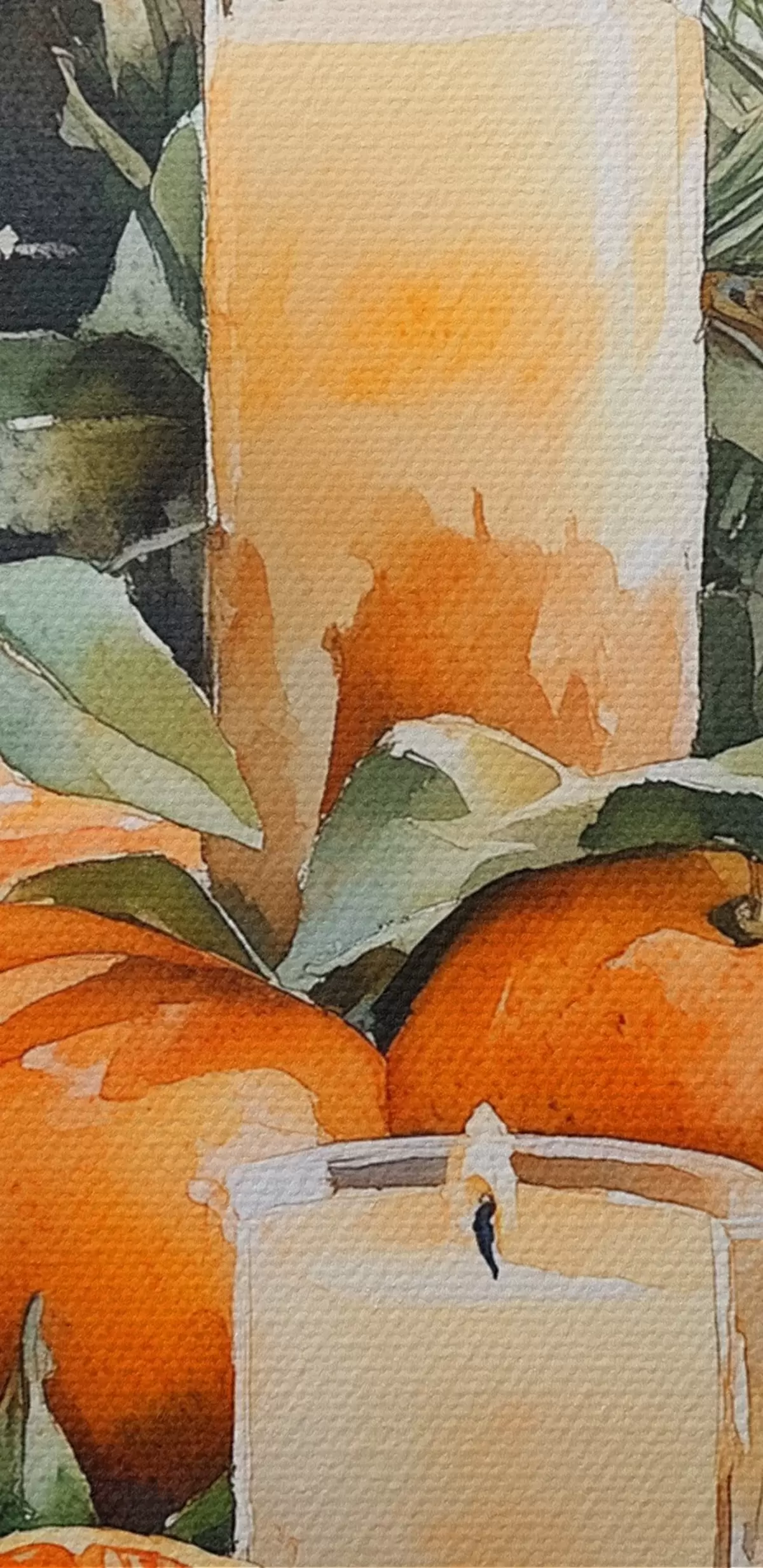Tablouri Ramuri de pin cu conuri, portocale și lumânări, festive, stil acuarelă s41956