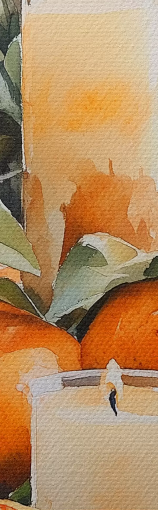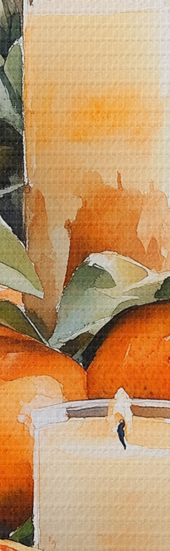 Pictură pe pânză Ramuri de pin cu conuri, portocale și lumânări, festive, stil acuarelă Nr s41956