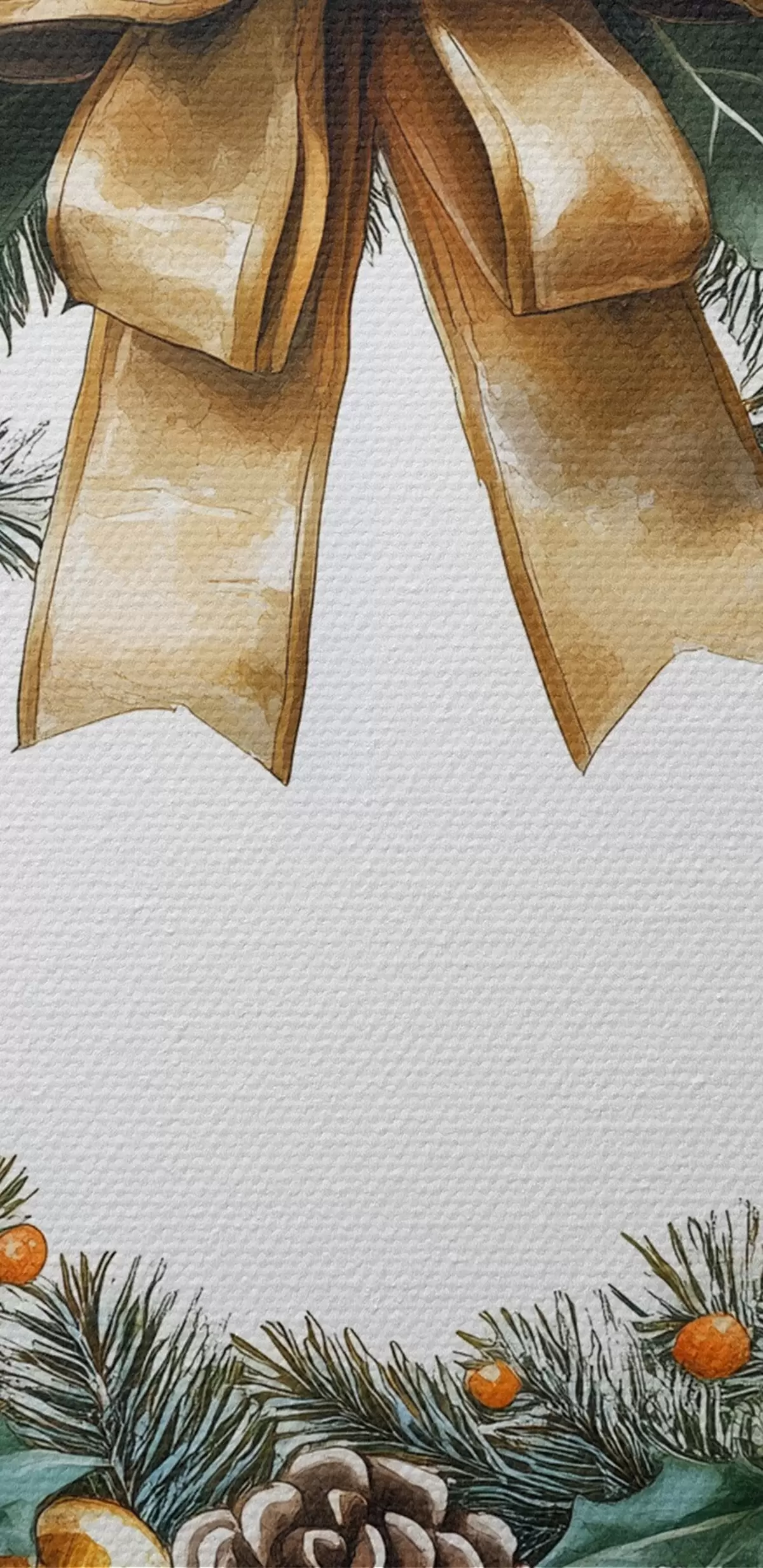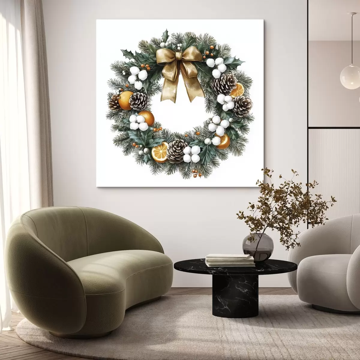 Pictură pe pânză Coroană de pin de Crăciun cu arc, bumbac, portocale, fructe de pădure și conuri Nr s41962