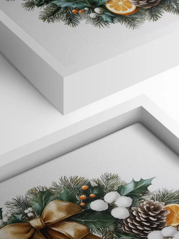 Tablouri Coroană de pin de Crăciun cu arc, bumbac, portocale, fructe de pădure și conuri s41962