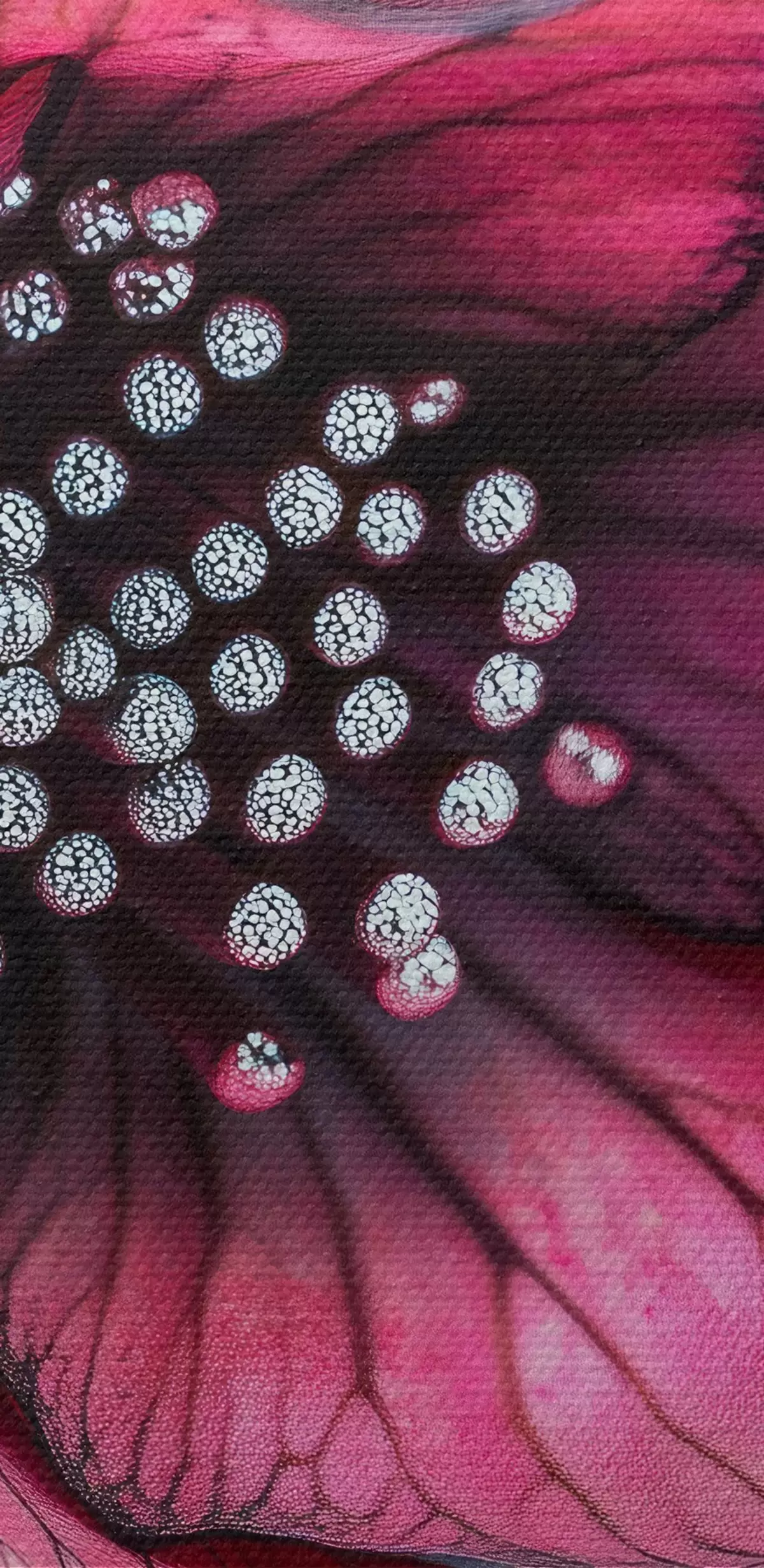 Țesătura fină a firelor de pe această pânză seamănă cu suprafața pânzelor artiștilor profesioniști.