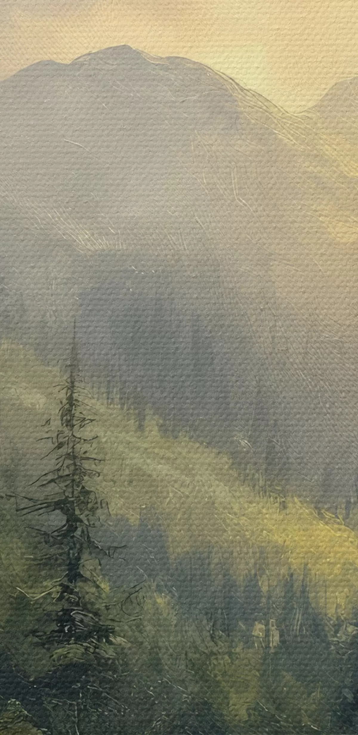 Pictură pe pânză munți în ceață și copaci Nr s42019
