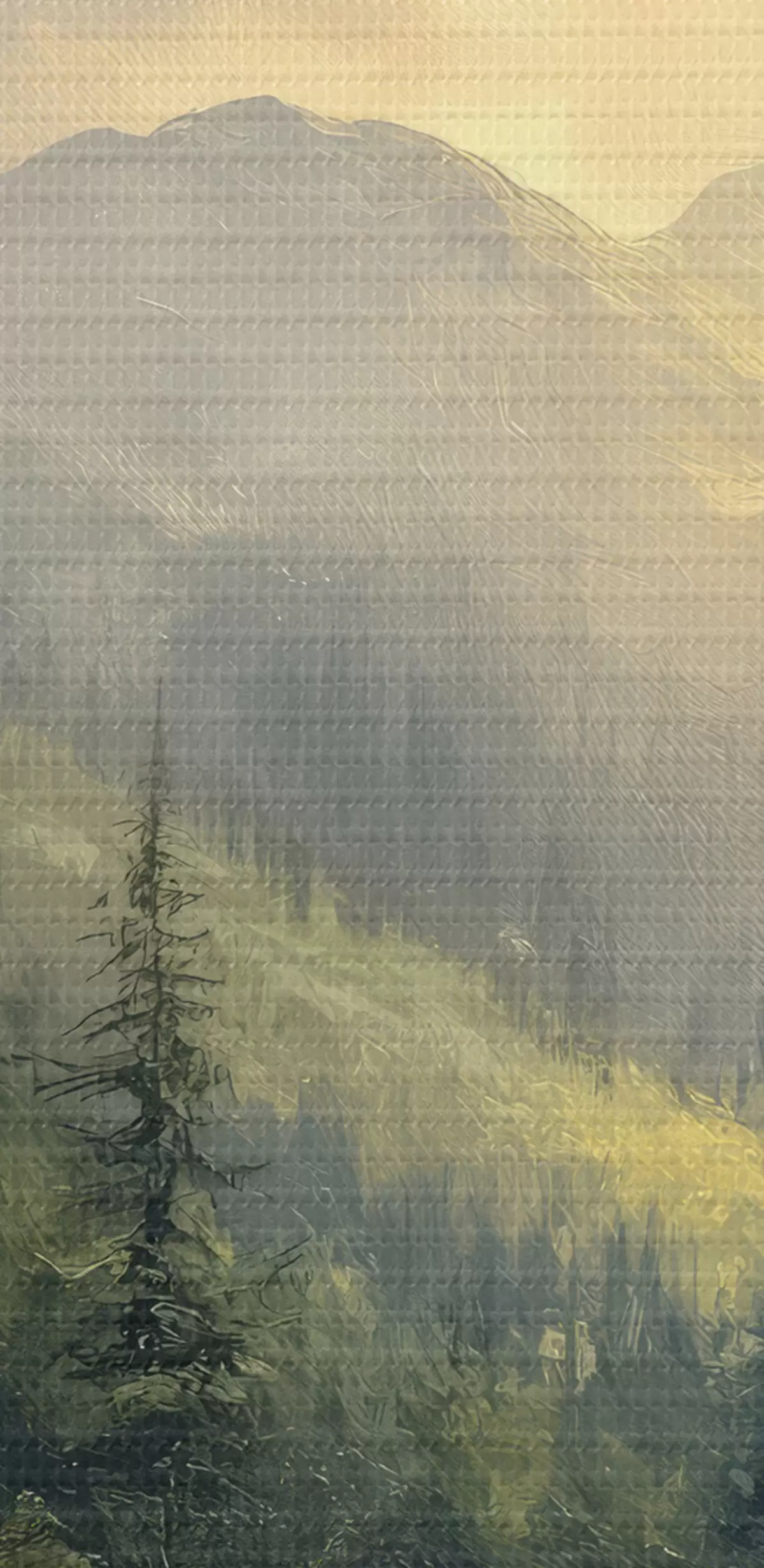 Tablouri munți în ceață și copaci s42019