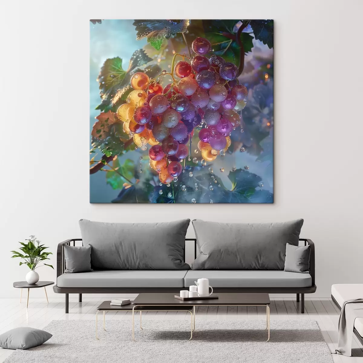 Pictură pe pânză Fructe, ciorchine de struguri în picături de apă Nr s42073