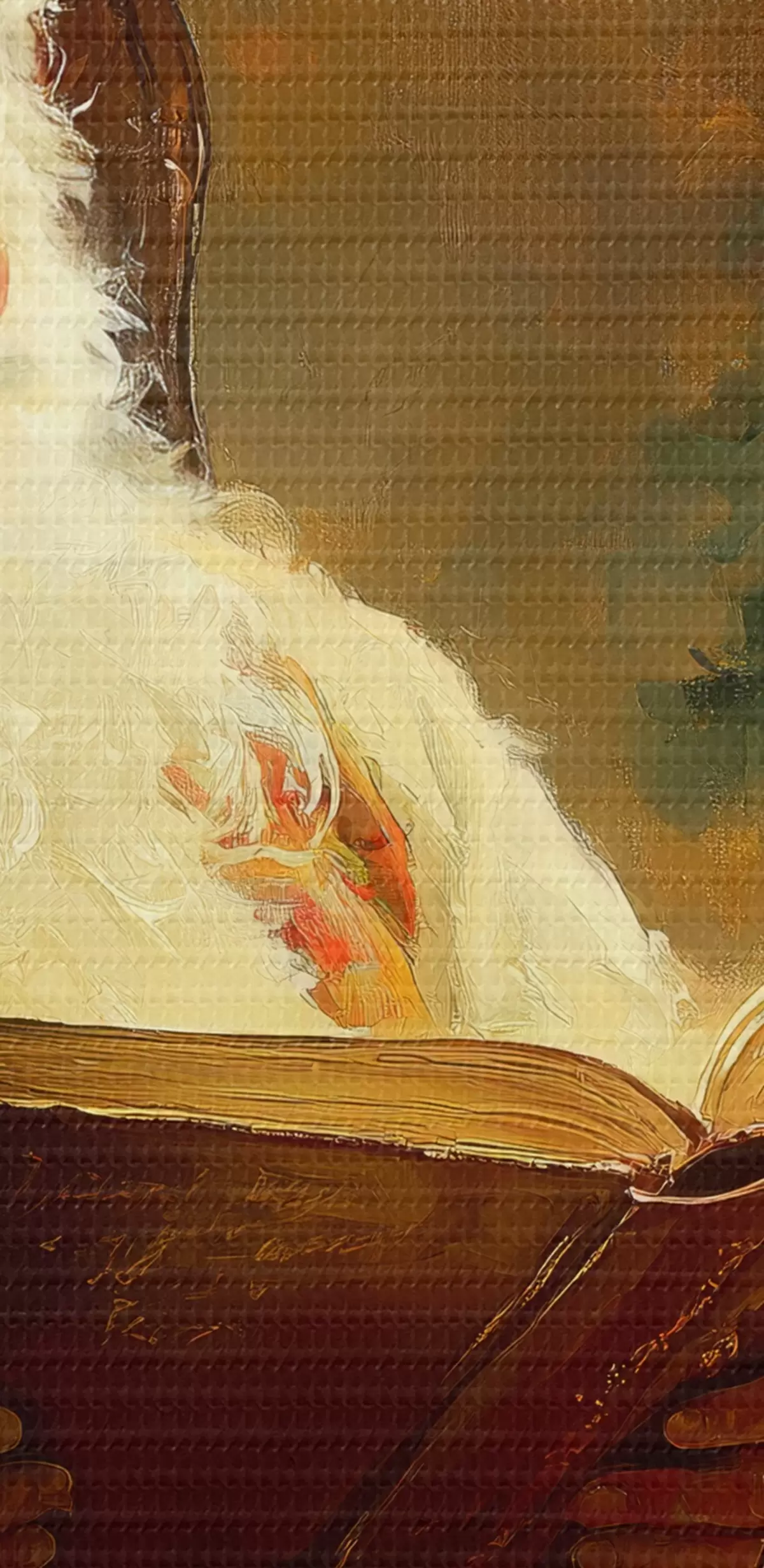 Pictură pe pânză Moș Crăciun citește o carte lângă bradul de Crăciun Nr s42100