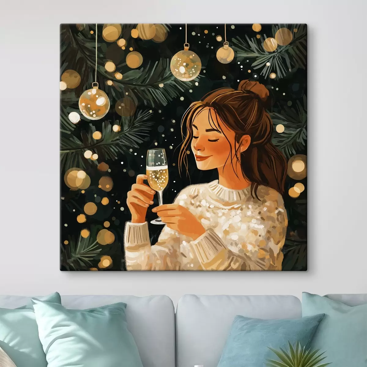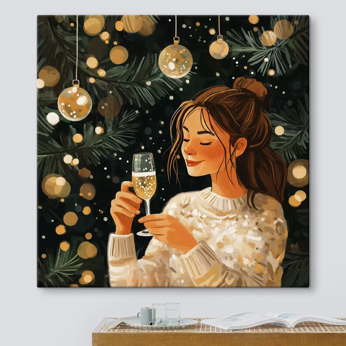 Pictură pe pânză O fată cu un pahar de șampanie în ajunul Anului Nou Nr s42102