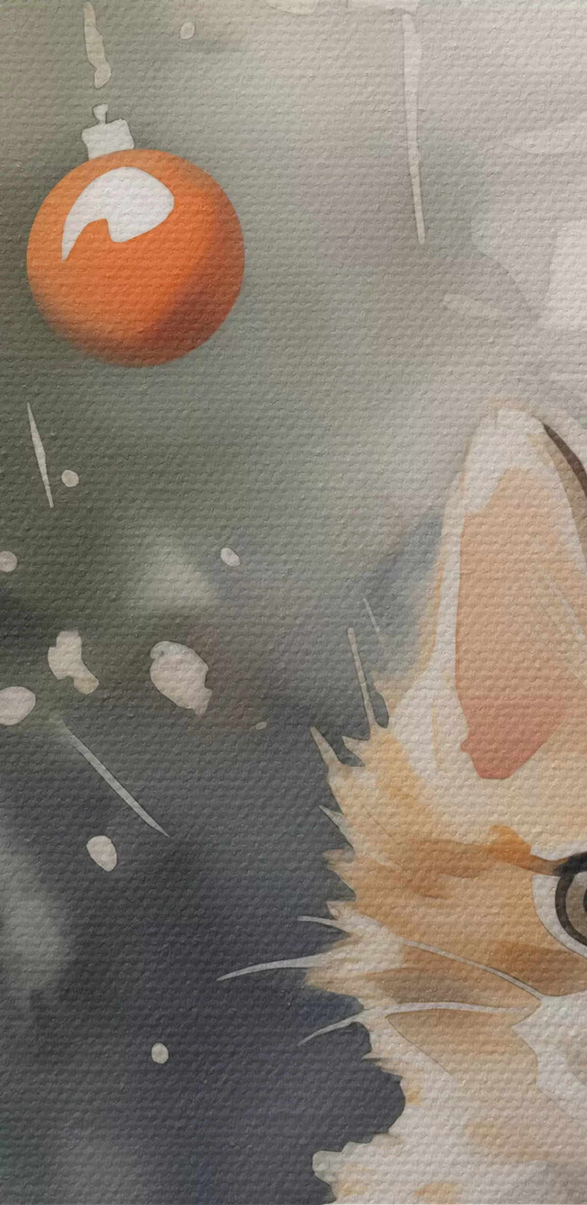 Tablouri Pisoi lângă pomul de Crăciun imitație de acuarelă umedă s42140