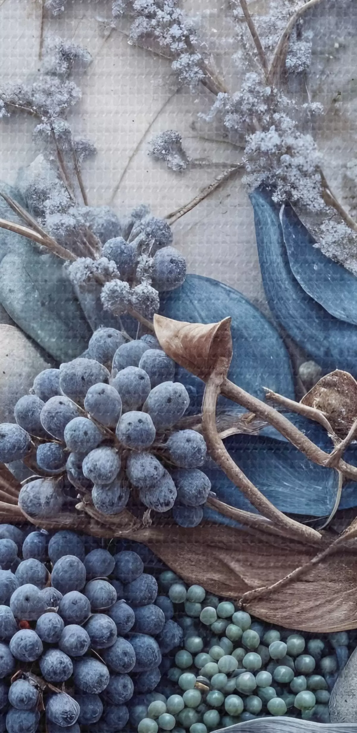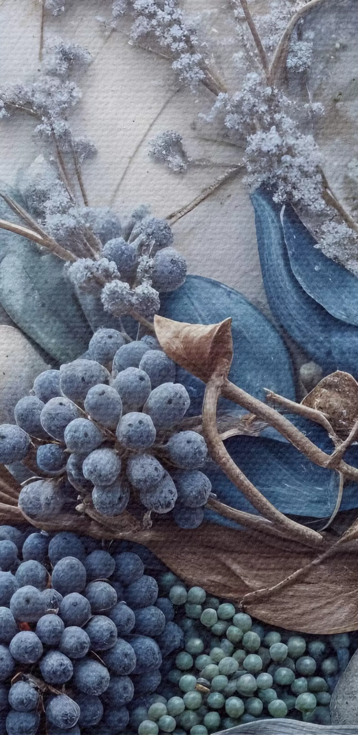 Tablouri O textură detaliată abstractă cu flori luxuriante, cu flori mari, vibrante, albastre și roz, fructe de pădure și alte elemente botanice  s42210